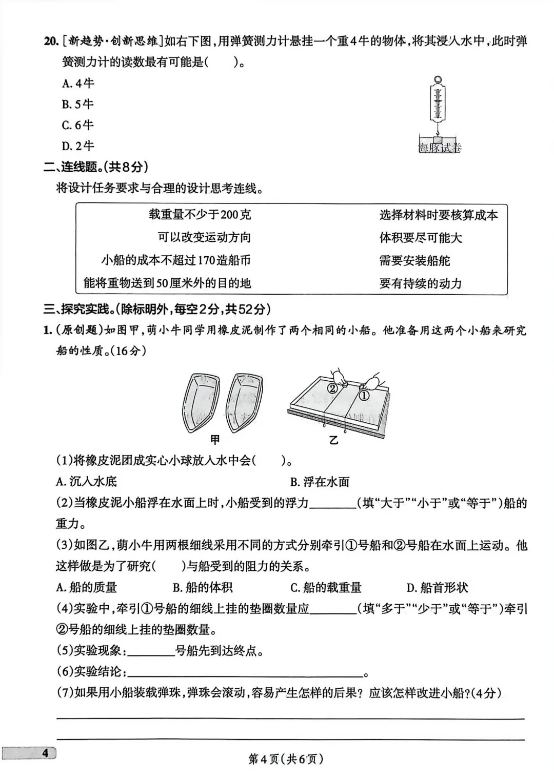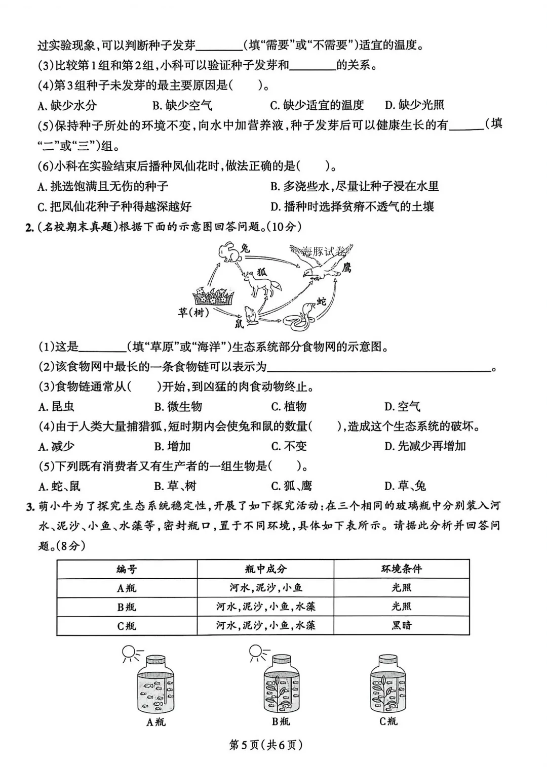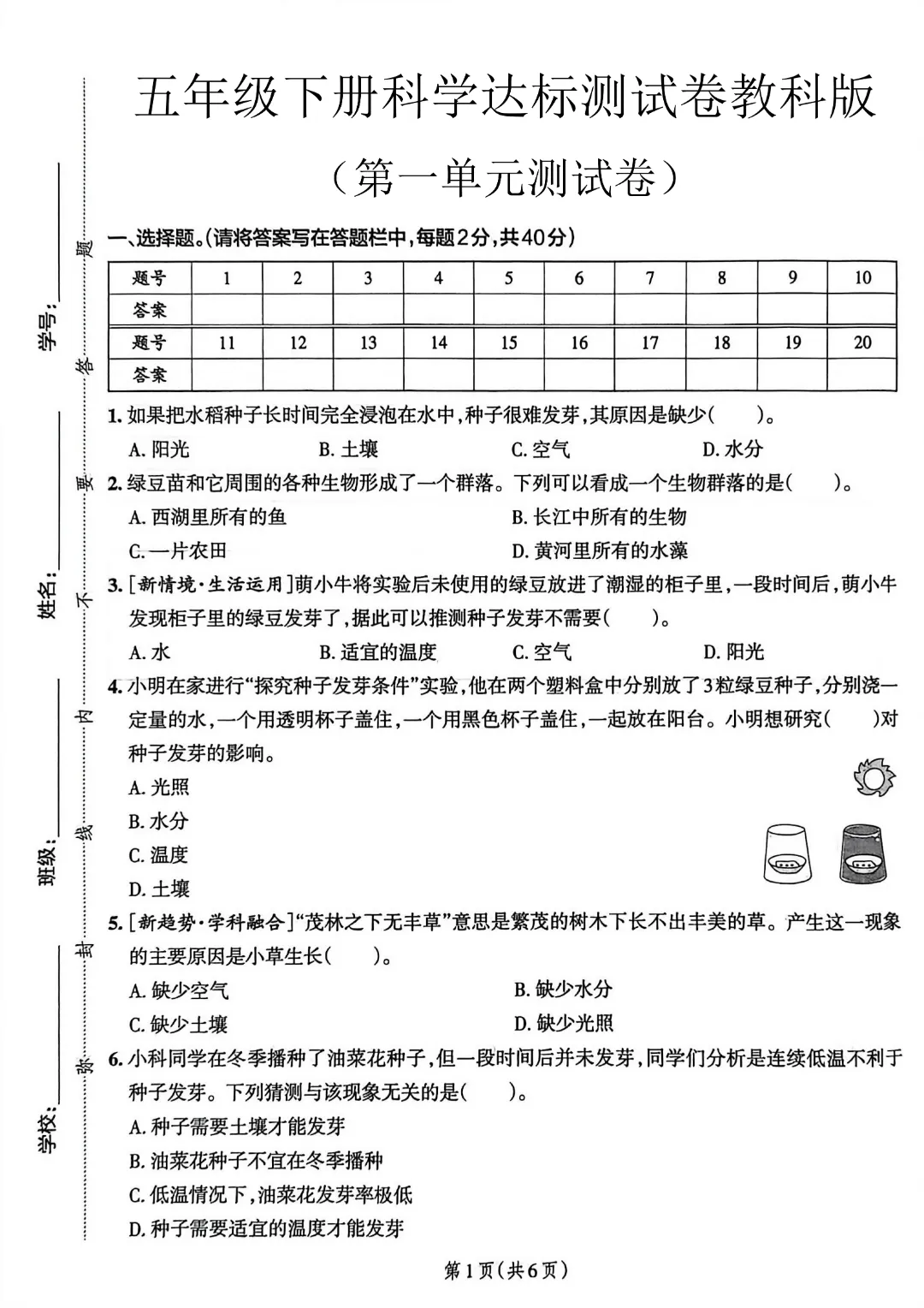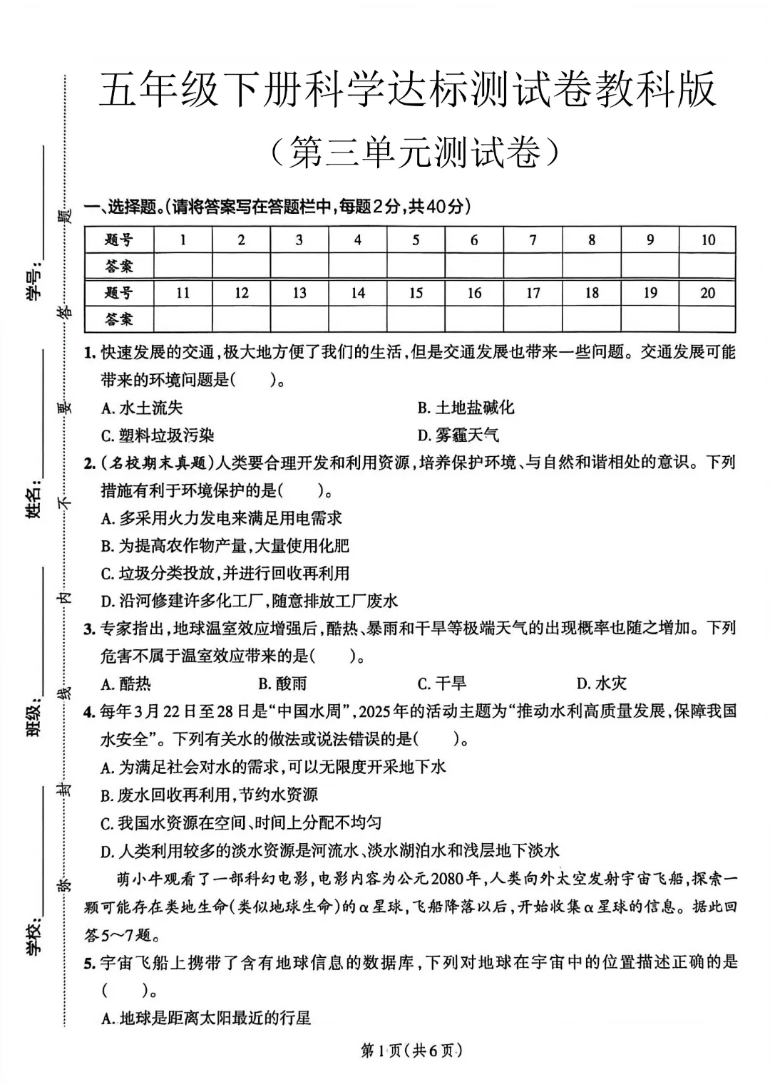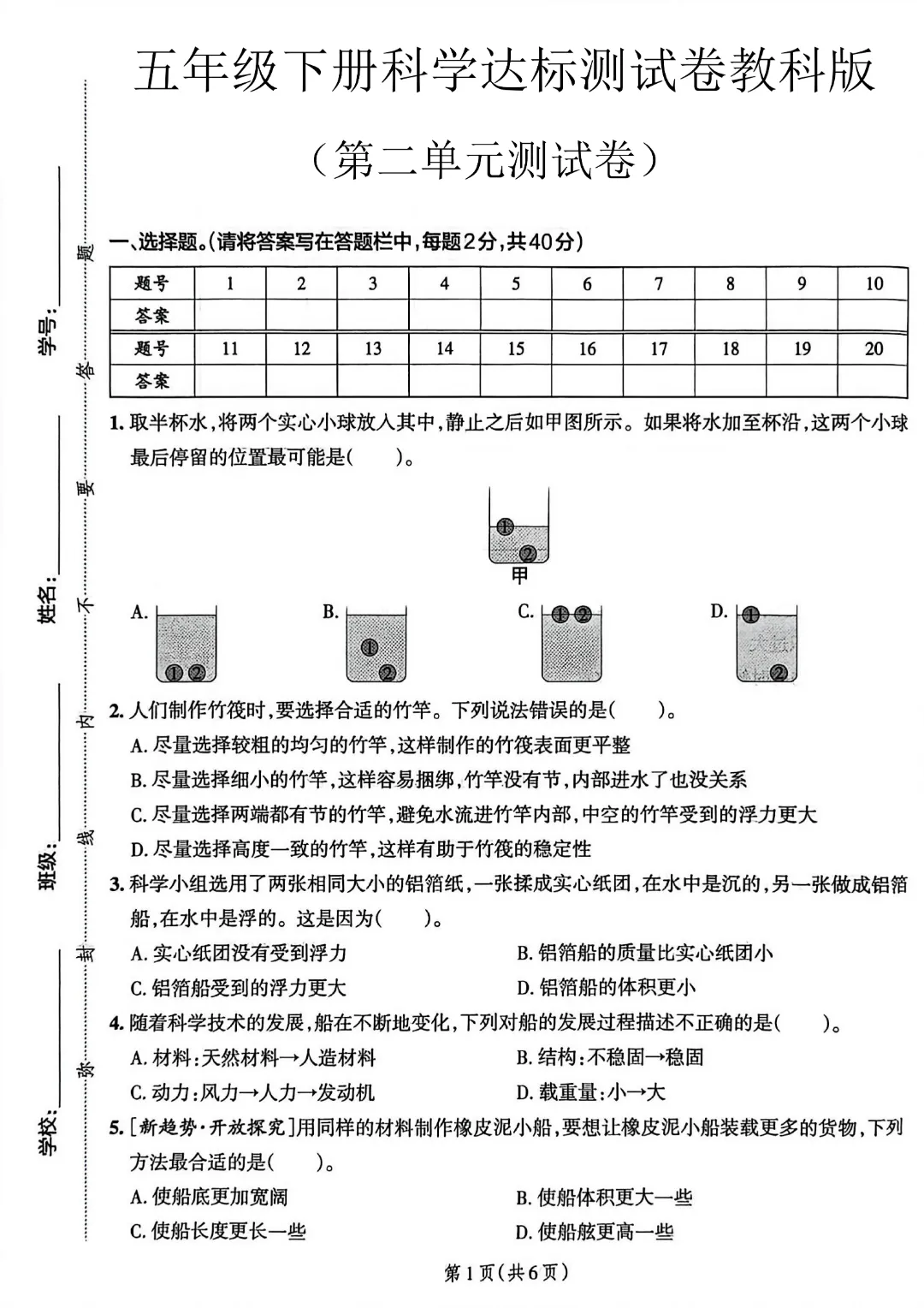今天给大家分享的是:26春新版五年级下册科学【教科版】【第1-3单元测试卷+期中测试卷】带答案丨完整高清电子版可打印