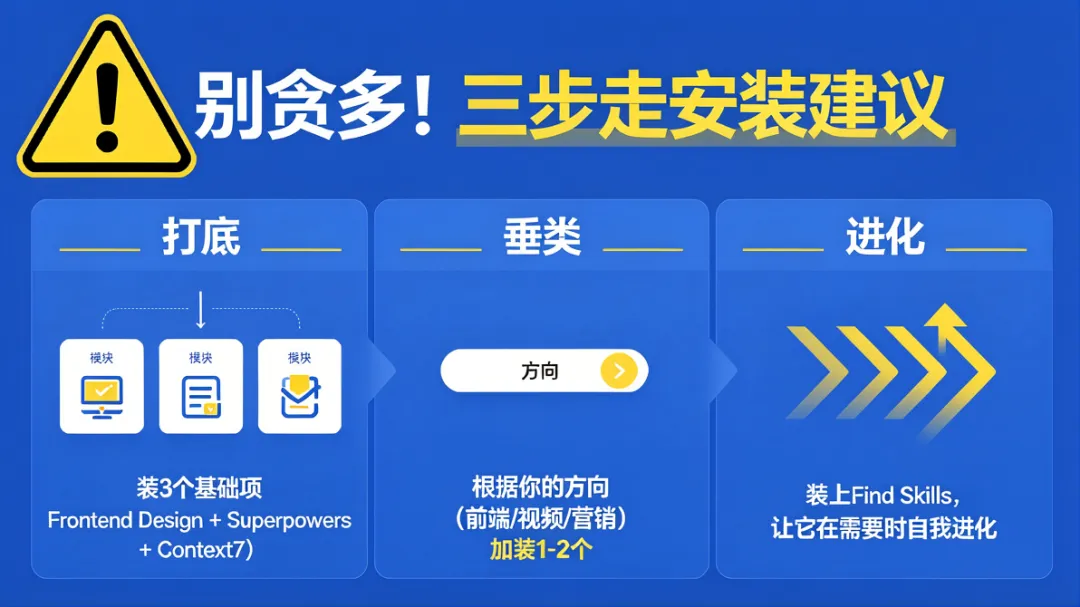 装太多 Skill 会导致 Claude 行为混乱。我的建议是: