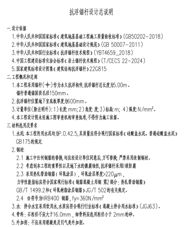 抗浮锚杆设计说明,大家可以参考使用。如有需要可以关注公众号后回复“锚杆说明”下载