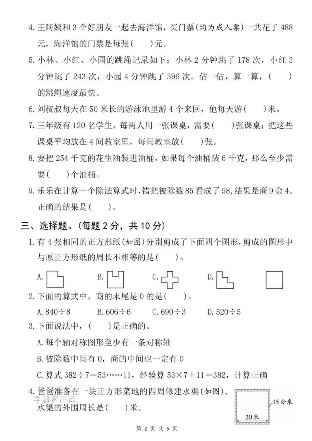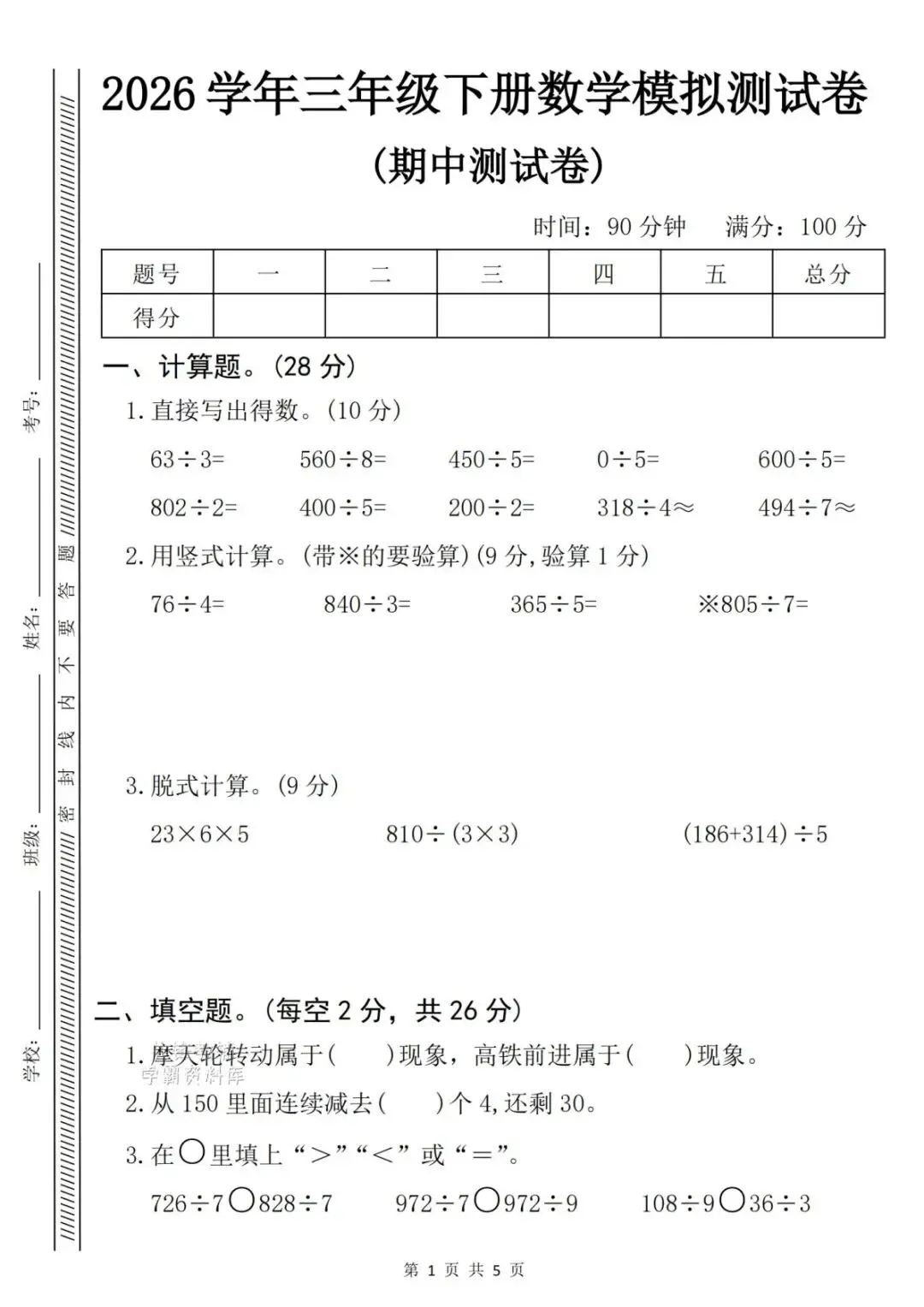 26春新版三年级下册语文数学期中检测卷,电子版可打印