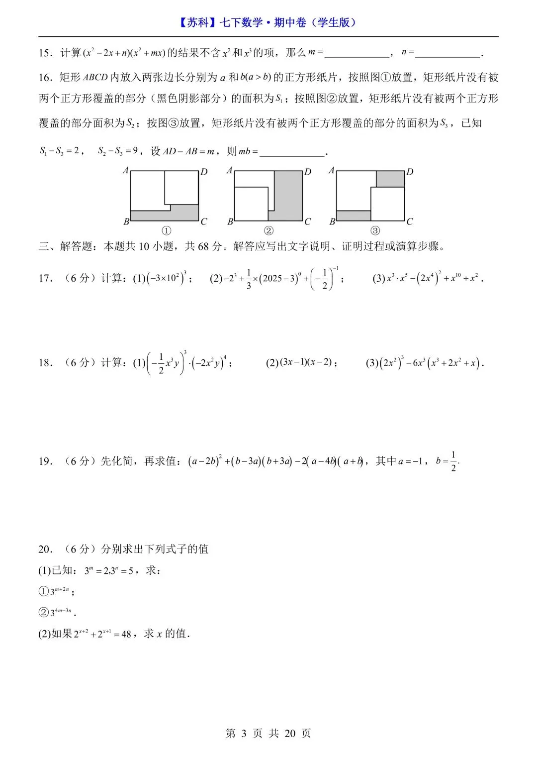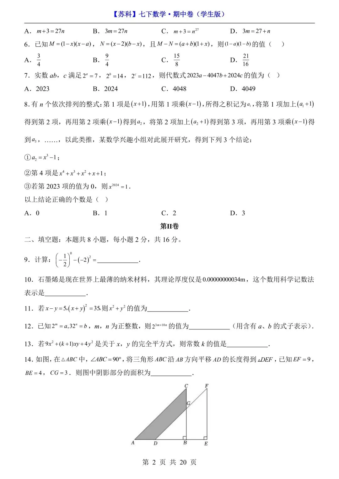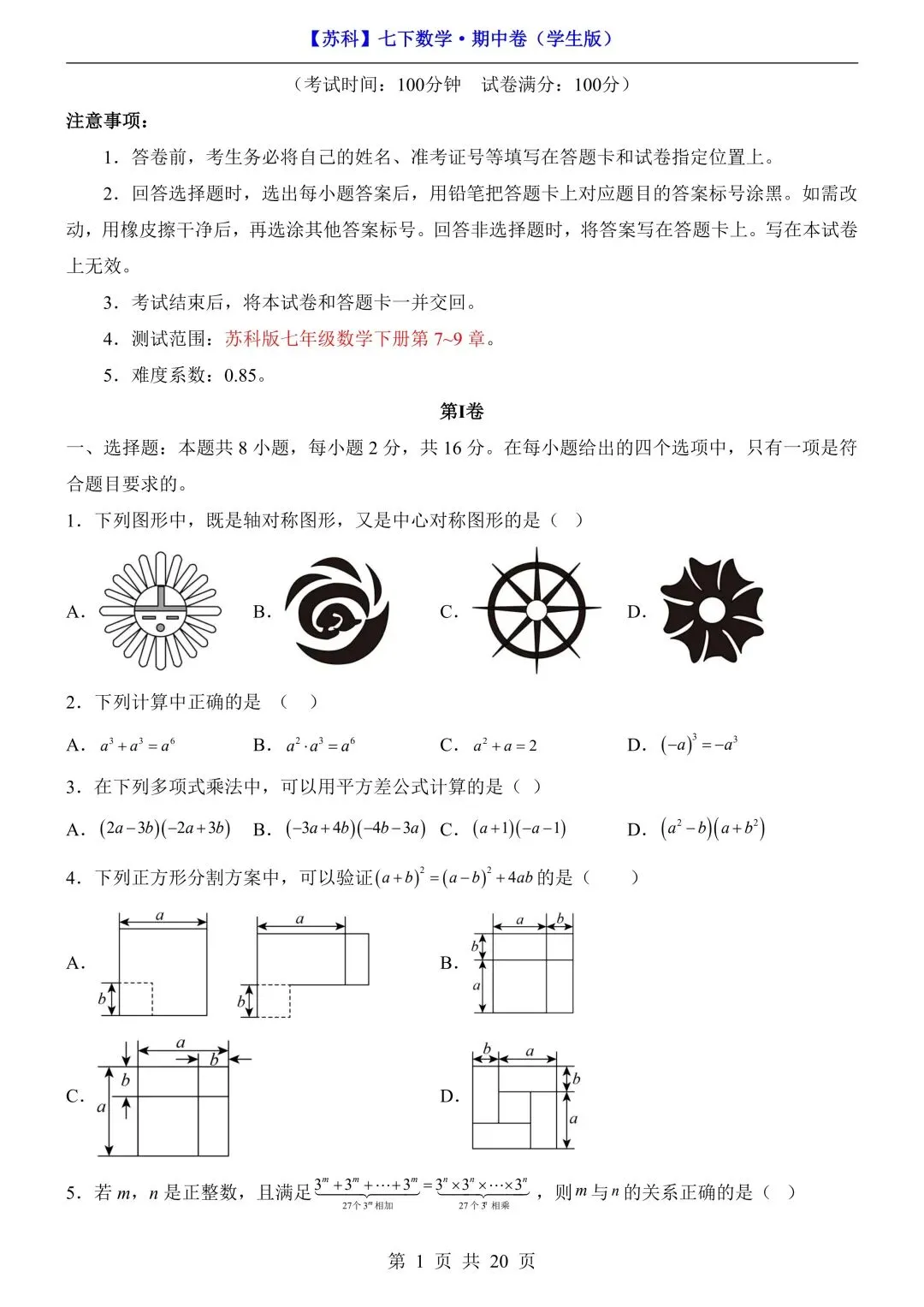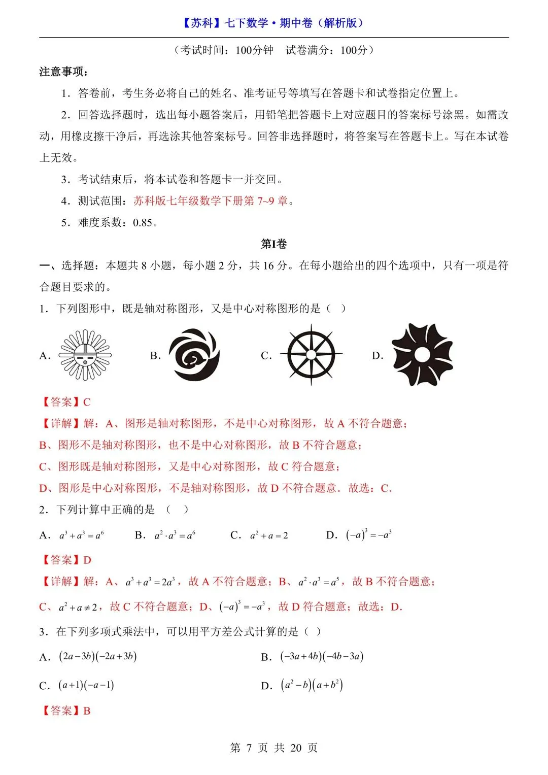 「七下数学」26年七年级下册苏科版数学《7-9章期中测试卷/含答案解析及答题卡》可打印 温馨提示:文末有完整电子版领取方式 领取方式领取完整电子版: ①:点一点右下角的“👍”和“❤️” ②:关注下方公众号“拾光伴学营” 在公众号对话框中回复:七年级 免责声明:本公众号所有资源分享仅供学习交流使用,公益分享,内容及图片均来自网络,如涉及侵权,请联系管理员删除 点点赞