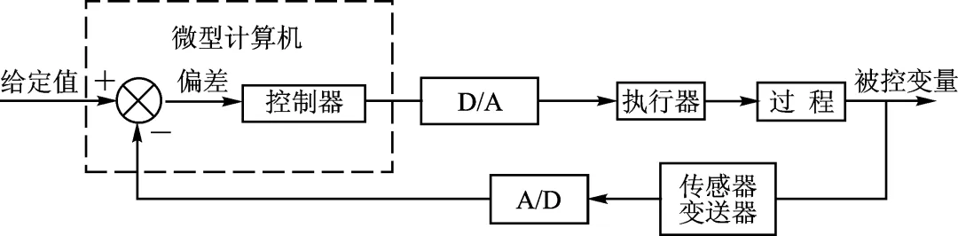 以微型计算机作为控制器。控制规律的实现,是通过软件来完成的。改变控制规律,只要改变相应的程序即可。