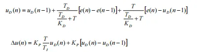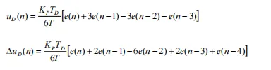 输入滤波就是在计算微分项时,不是直接应用当前时刻的误差 e(n),而是采用滤波值 e(n),即用过去和当前四个采样时刻的误差的平均值,再通过加权求和形式近似构成微分项