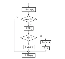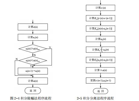 积分限幅法的基本思想是当积分项输出达到输出限幅值时,即停止积分项的计算,这时积分项的输出取上一时刻的积分值。其算法流程如图 2-4 所示。