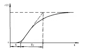 (3)在曲线最大斜率处作切线,求得滞后时间t,被控对象时间常数Tt以及它们的比值Tt/t。
