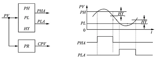 当 PV>PH(上限值)时,则上限报警状态(PHA)为“1”;