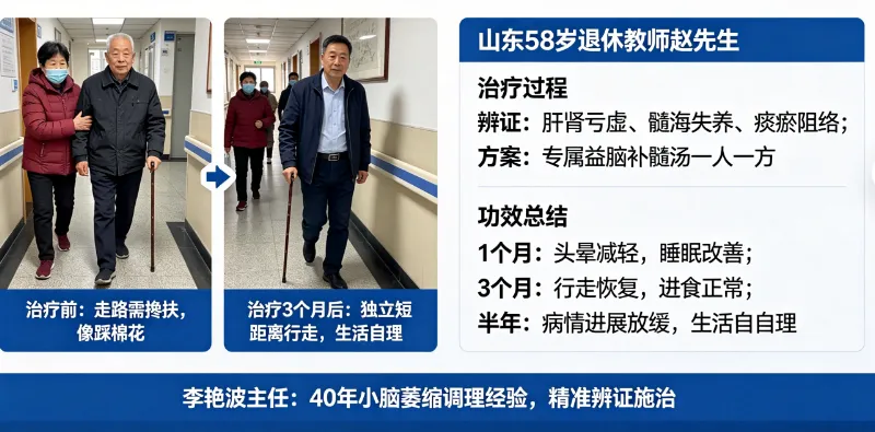 李艳波主任深耕小脑萎缩调理 40 余年,精准把控病情发展规律,依托专属益脑补髓汤,一人一方辨证施治,直击小脑萎缩根源,帮助无数患者阻断小脑快速凋亡,守住生活自理能力。