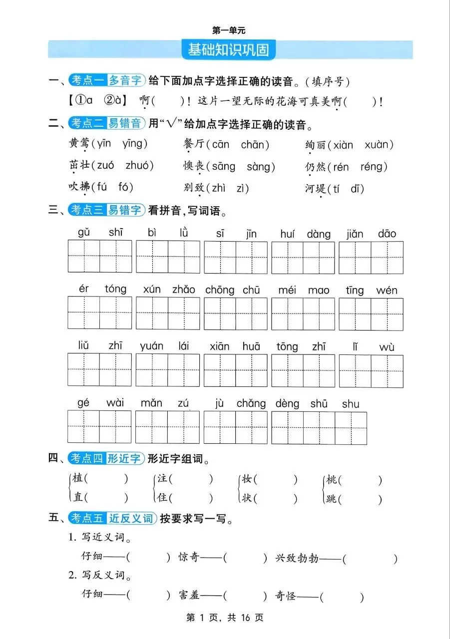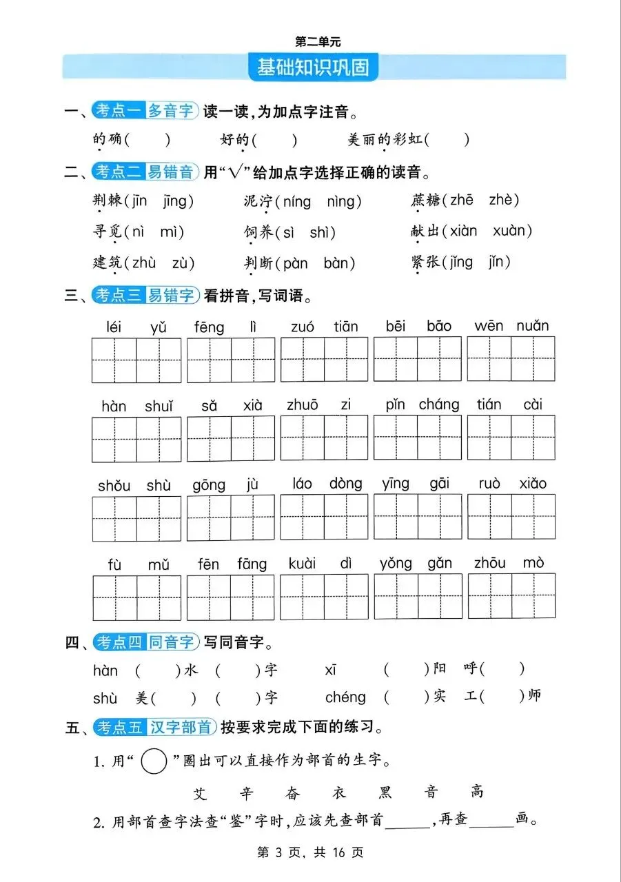 3年级语文下册 单元基础知识巩固 26春电子版免费下载!