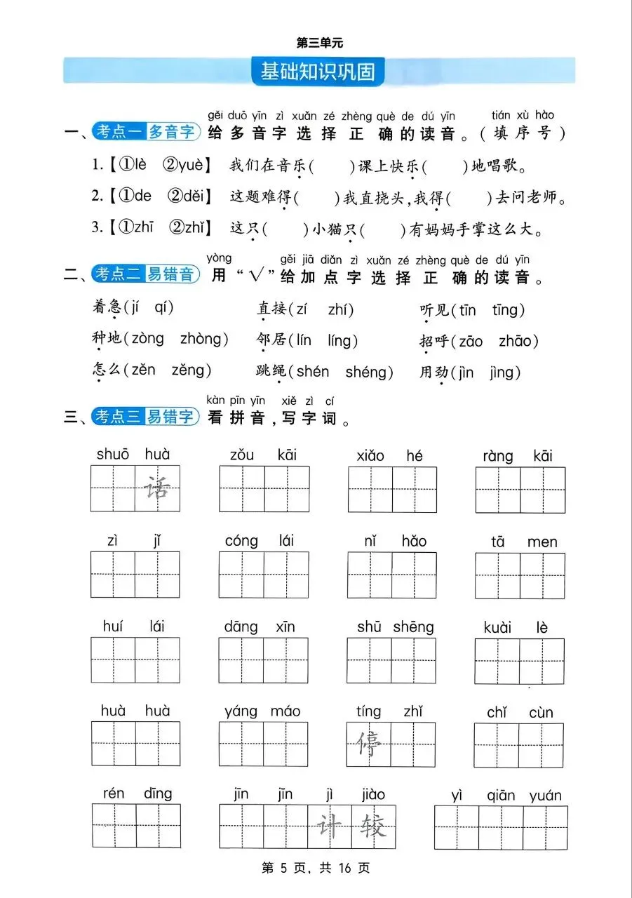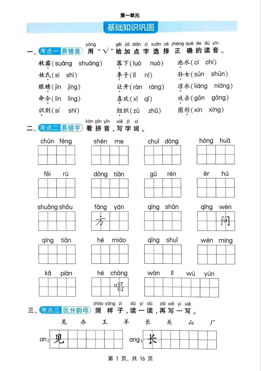 一年级语文下册单元基础知识巩固电子版免费领取