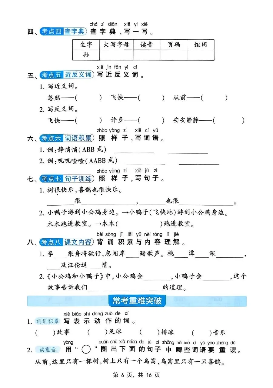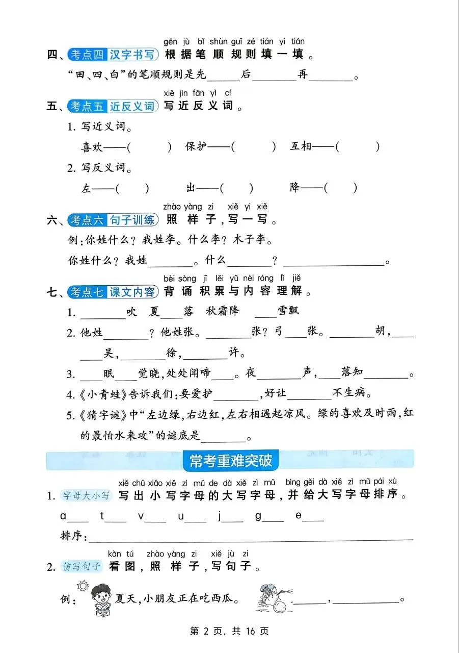 希望这份资料能帮助孩子扎实走好学习之路。需要的家长抓紧打印出来,让孩子练一练吧。