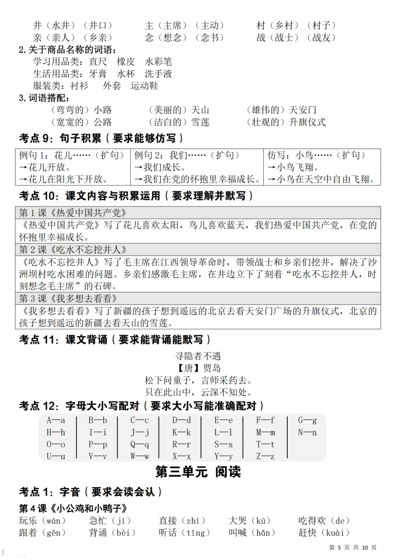 小学一年级下册语文|期中覆盖式复习重点(可打印)