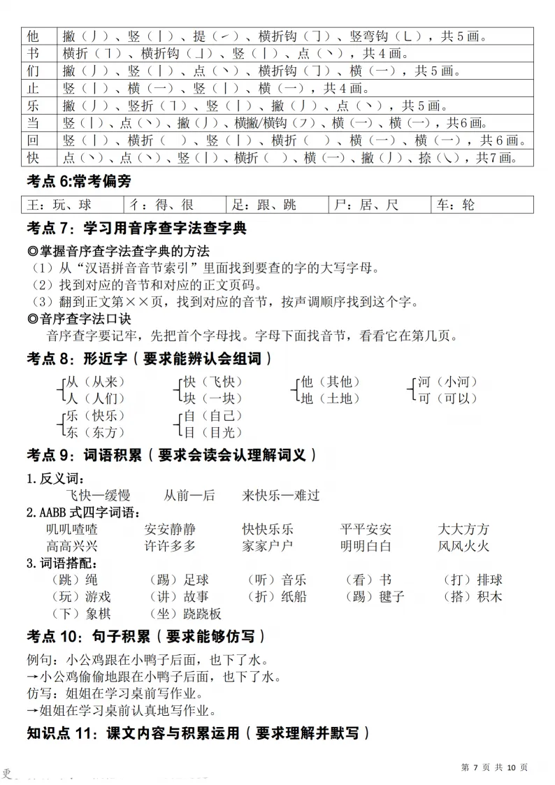 小学一年级下册语文|重点知识预习汇总(可打印)