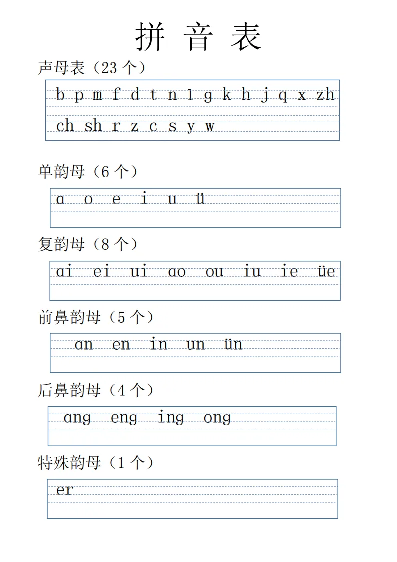 幼小衔接|语文拼音表全汇总(可打印)