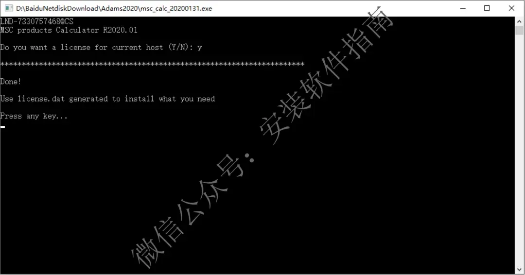 6、你会发现安装文件夹内生成了一个license.dat文件,注意它在电脑的位置,一会需要用到它