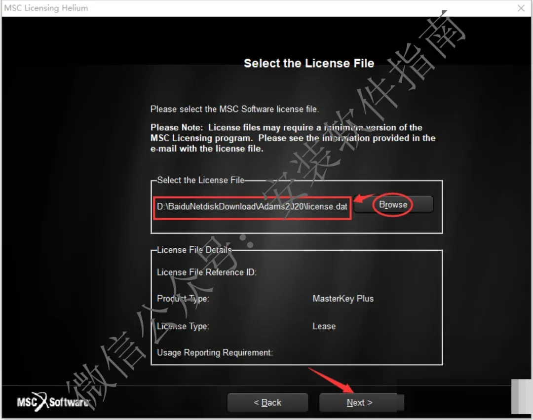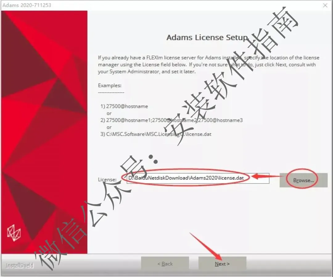 11、点击Browse…按照第6步记住的 license.dat文件位置,找到它,选择 然后点击Next