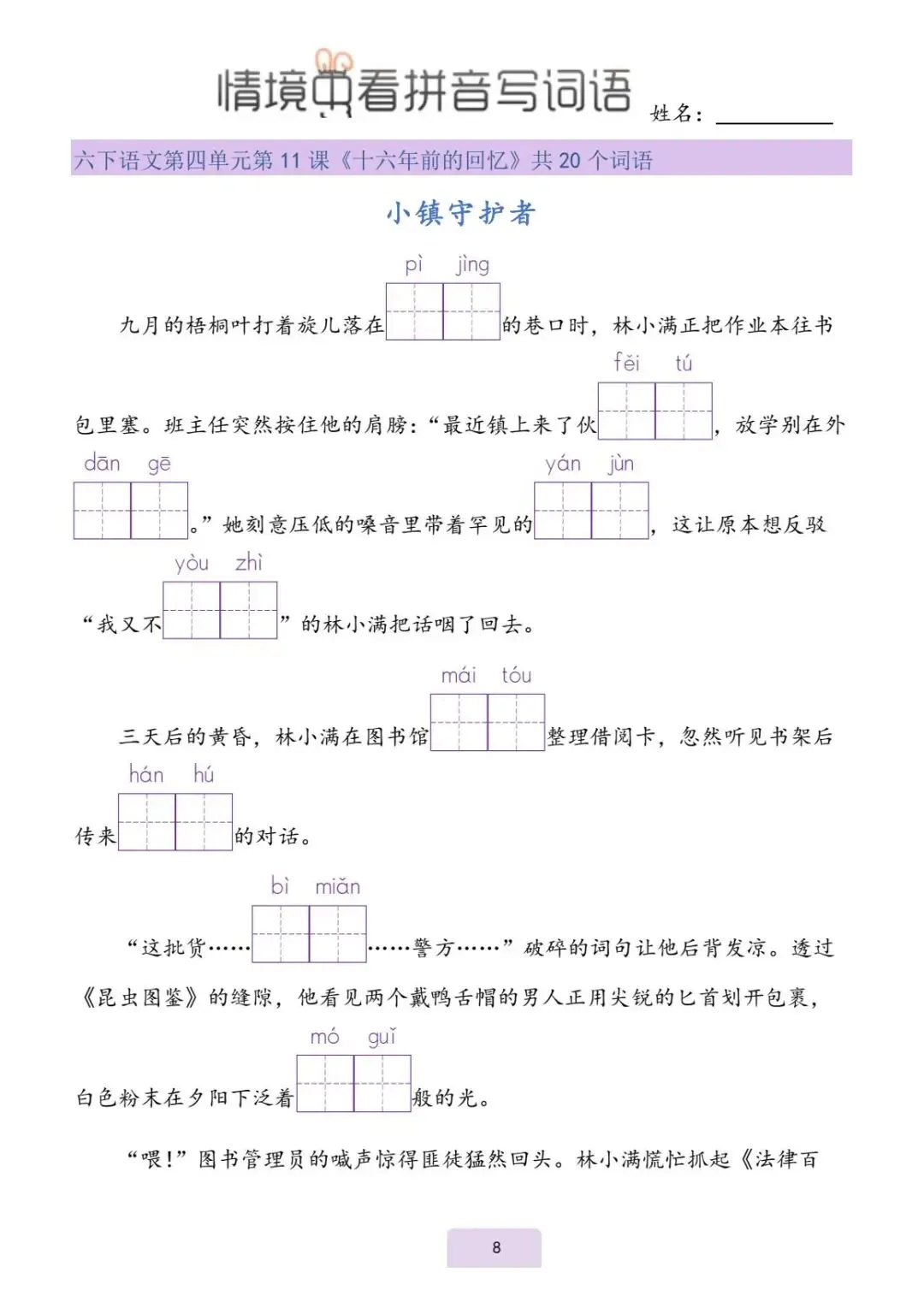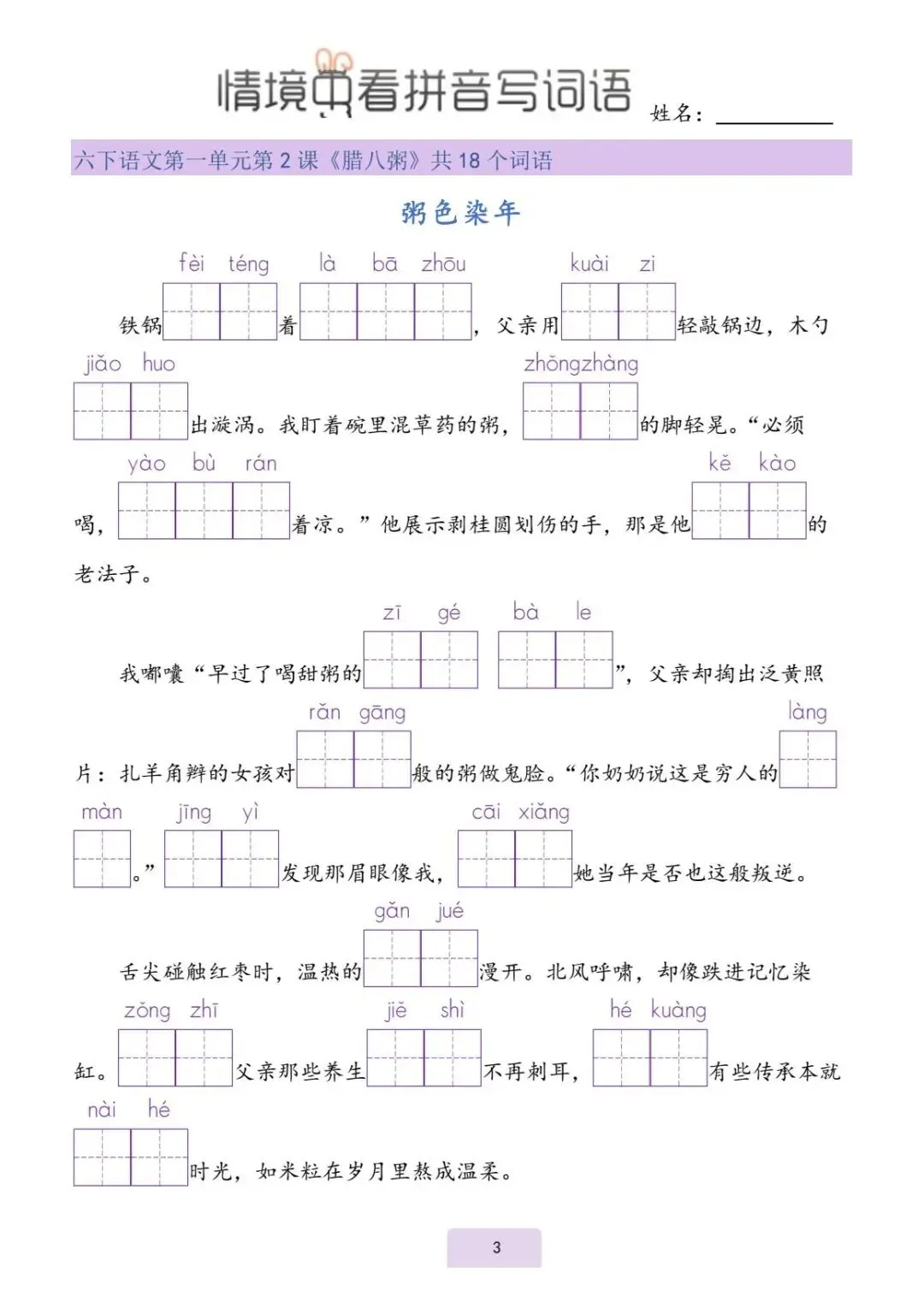 六年级(下)语文《看拼音写词语》