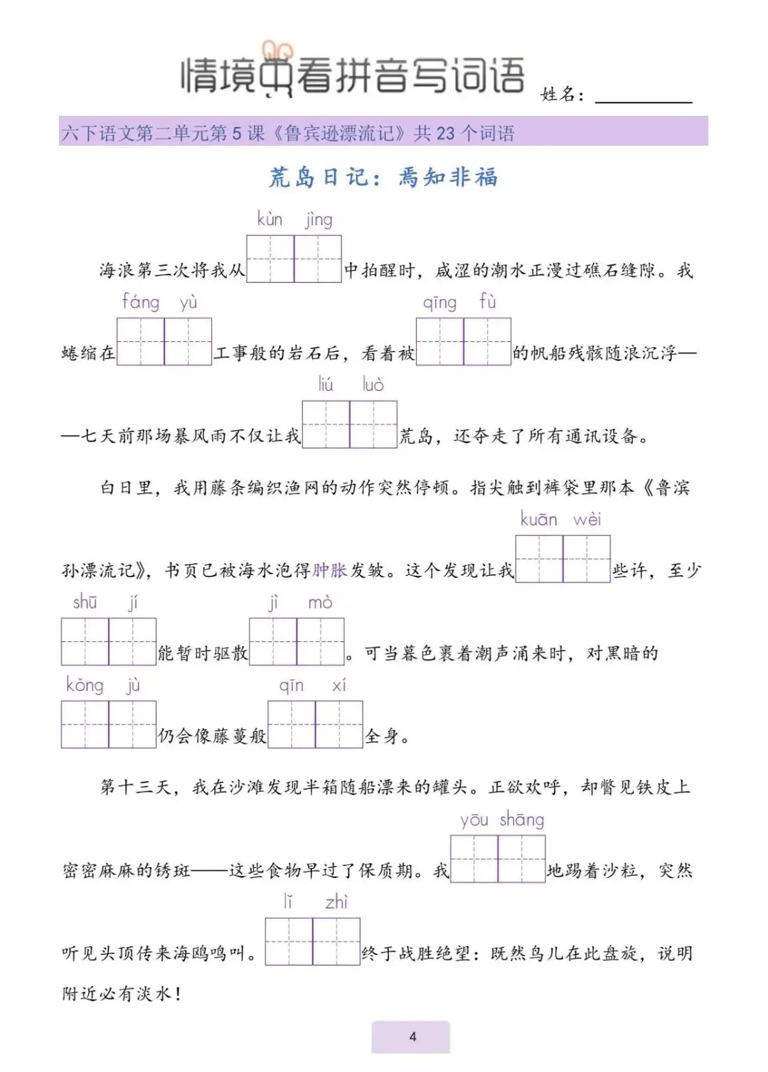 五年级(下)语文 情境中看拼音写词语