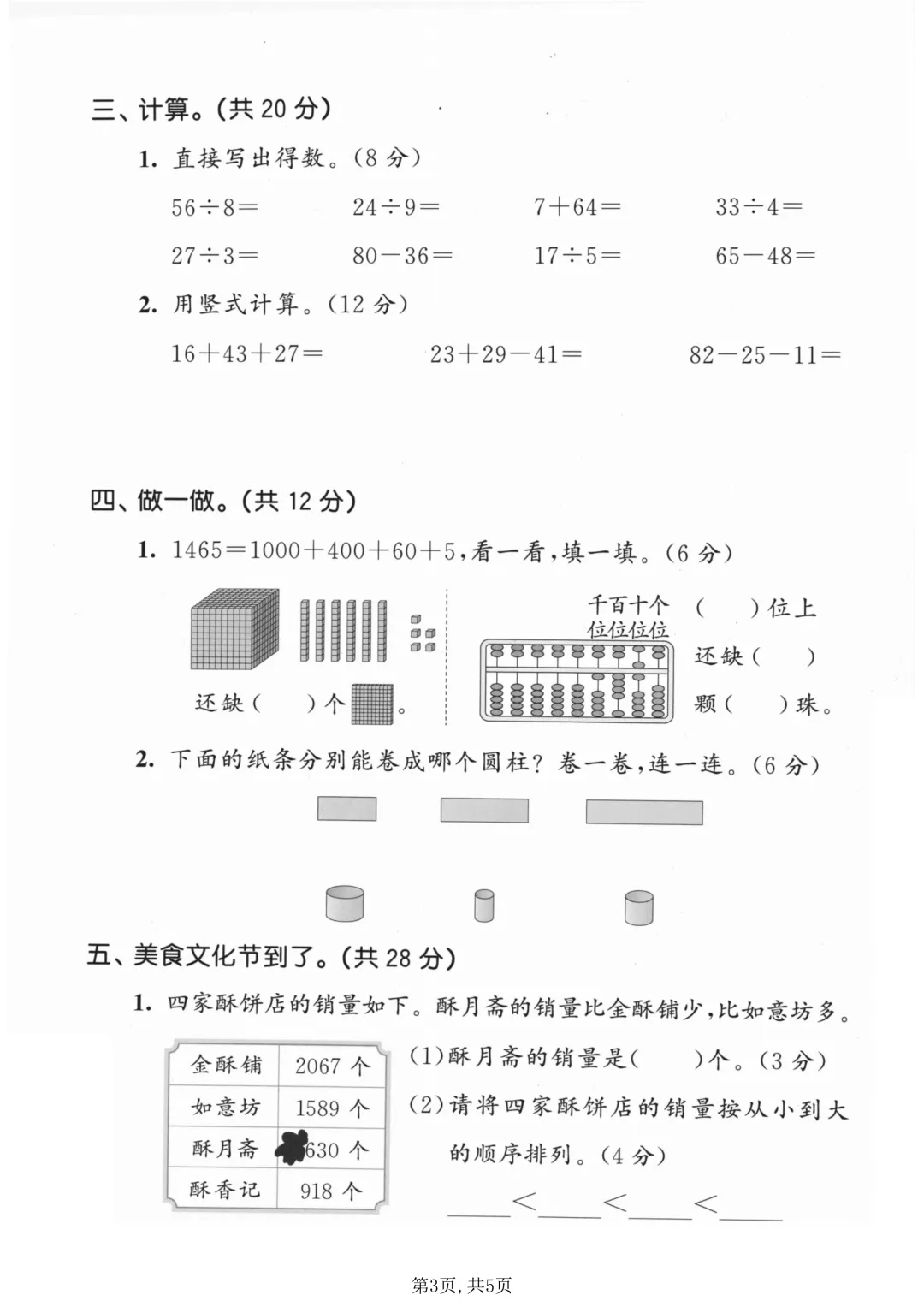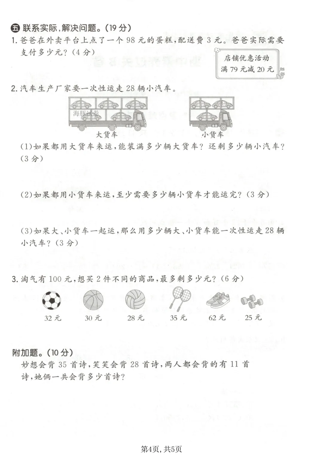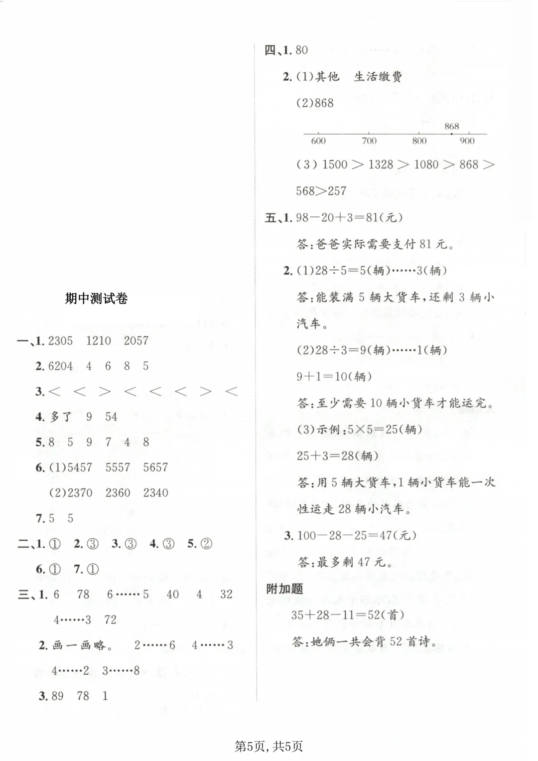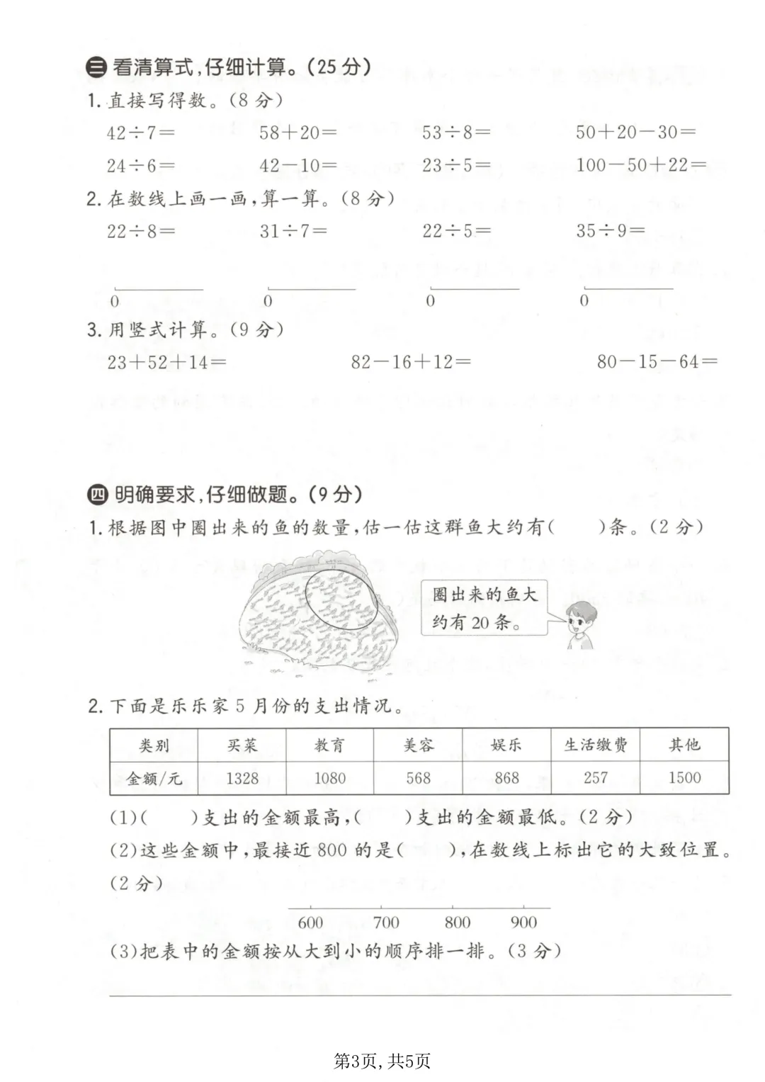 26年春二年级(下)数学期中拔尖测试卷《北师版》。精准覆盖教材核心考点试卷严格贴合北师大版二年级下册教材,覆盖表内除法、万以内数的认识与加减运算、有余数的除法、时分秒的认识与计算、图形的运动(平移、旋转)、人民币的简单换算与应用等核心知识点,题型设计与教材例题高度匹配,难度循序渐进,帮助孩子扎实掌握课本内容。分层训练,满足不同需求试卷通常分为基础夯实卷、综合质量卷和拔高提升卷:基础卷聚焦核心知识点,帮助孩子筑牢数学根基,避免基础题失分;综合卷还原校内考试场景,全面考查知识掌握程度,帮助查漏补缺;拔高卷适度增加难度,锻炼孩子的审题能力和灵活解题思维,适合学有余力的孩子冲刺高分。培养良好的答题习惯试卷排版采用大字护眼设计,预留充足书写空间,帮助孩子养成整洁书写的习惯。同时,详细的参考答案和解题步骤,让孩子能够自主核对和纠错,培养独立学习能力。需要的家长抓紧打印出来,让孩子写一写,练一练吧。