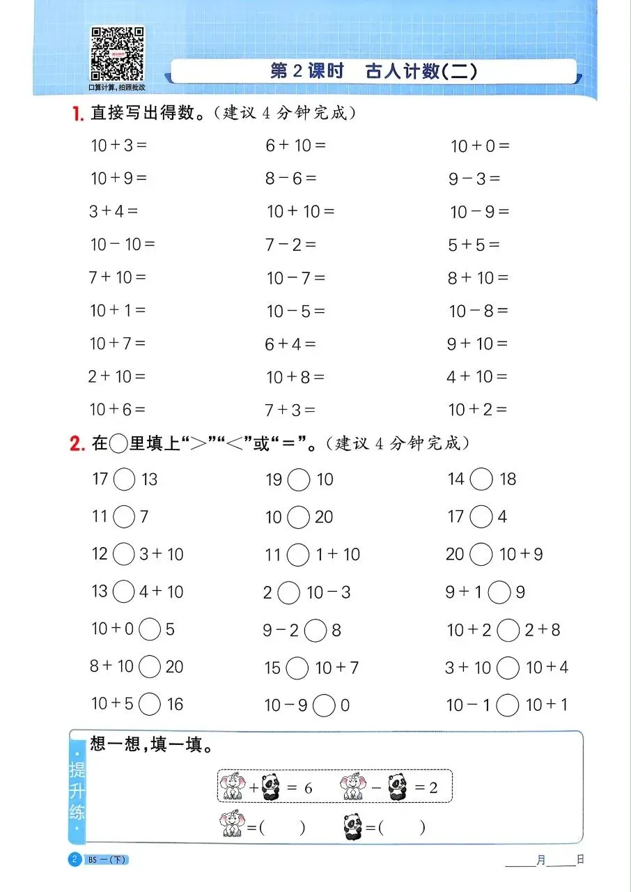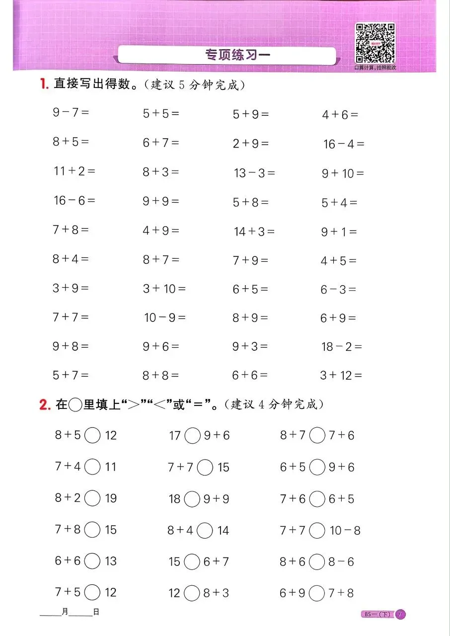 HI,今天分享的学习资料是:2026年春新版一年级下册数学北师大版《同步计算题天天练》(每天10分钟口算+竖式,含答案),高清完整电子版可打印。这套同步课本计算题,能帮孩子提升计算能力和答题效率,建议家长打印出来让孩子练一练,夯实基础、助力数学学习吧!🌸欢迎分享到家长群或班级群,帮助更多孩子高效学习吧~