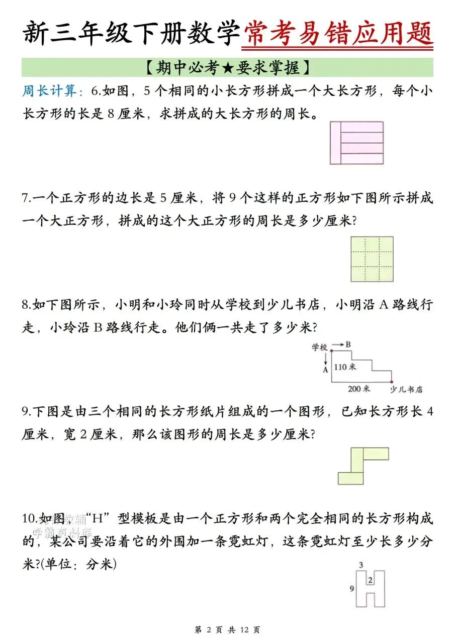 共12页,聚焦周长计算、归一、归总、除数是一位数的除法、还原、时间六大高频题型,附详细解题步骤与完整参考答案,适合期中复习巩固。