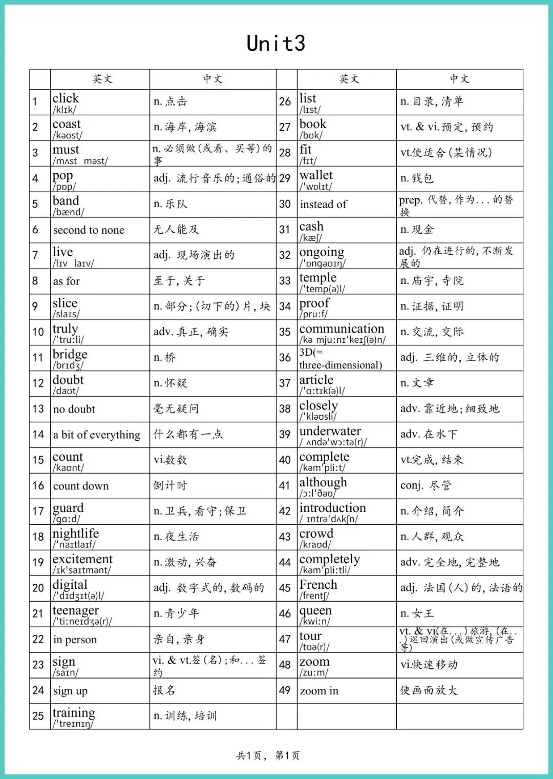 【免费下载】八年级(下)英语单词表_背诵版(译林版) | PDF完整高清电子版可打印