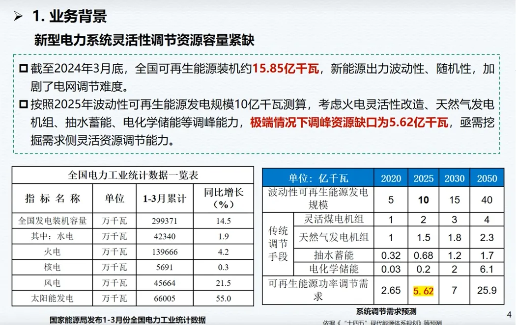 2025 年我国波动性可再生能源装机将达 10 亿千瓦,极端场景下调峰资源缺口高达5.62 亿千瓦,虚拟电厂成为填补缺口的核心解决方案。