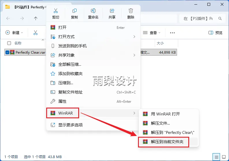 1.右键下载的压缩包,并【解压到当前文件夹】