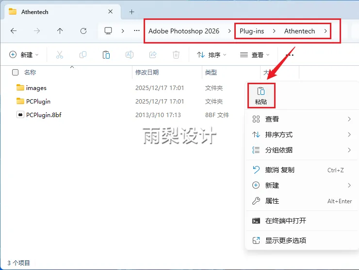 11.复制【images和PCPlugin.8bf】粘贴到【PS安装目录的>Plug-ins>Athentech】
