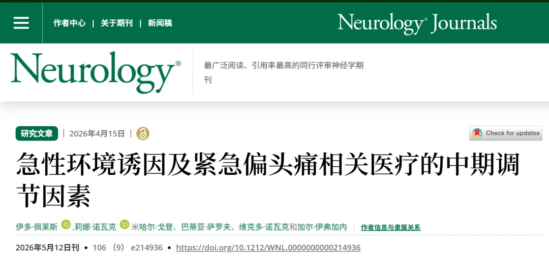 2026年4月15日,他们发表在美国神经病学会官方杂志《神经学》(Neurology)上的一项重磅研究,终于为我们揭开了偏头痛与环境之间那层隐秘的“分层关系”。