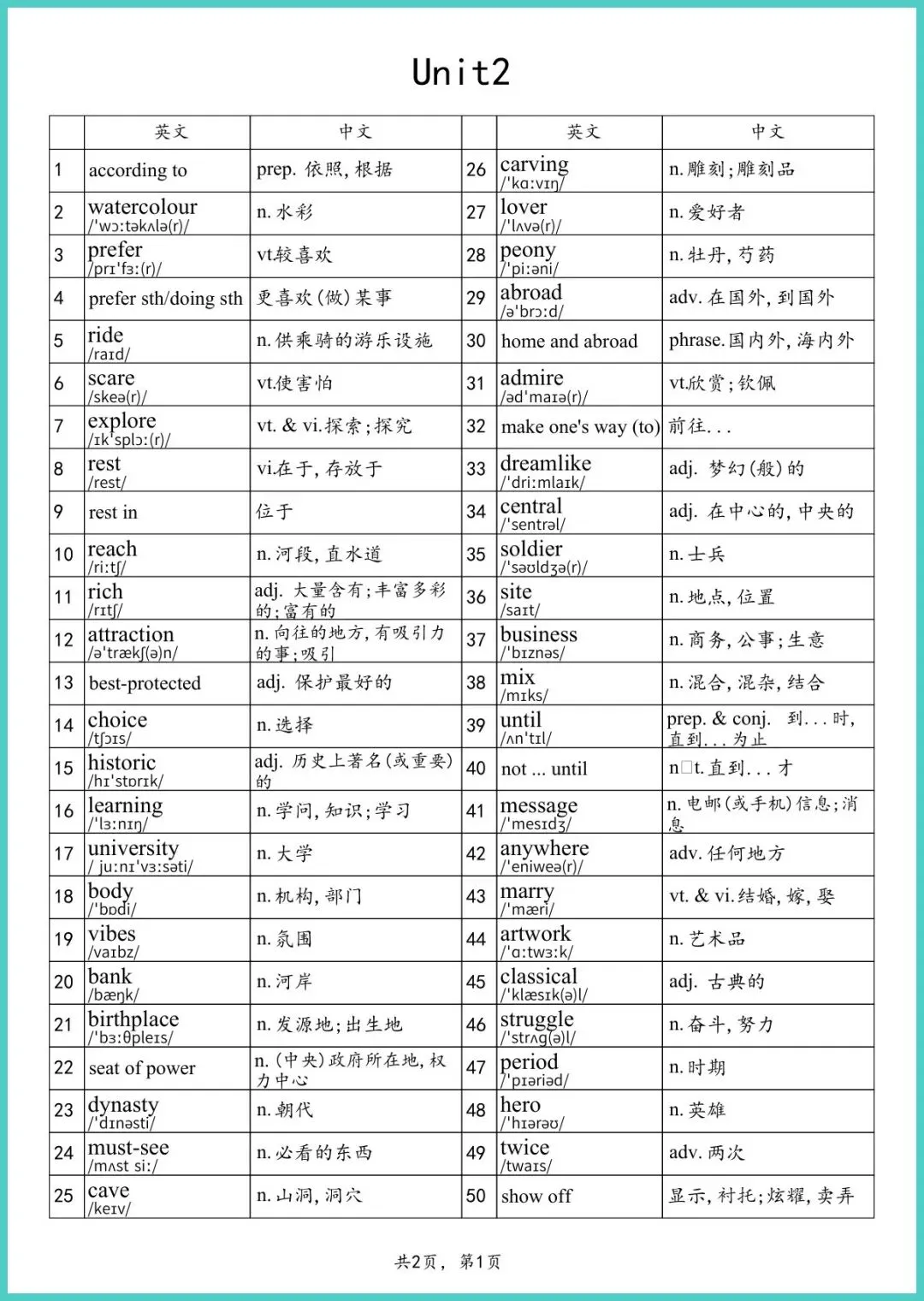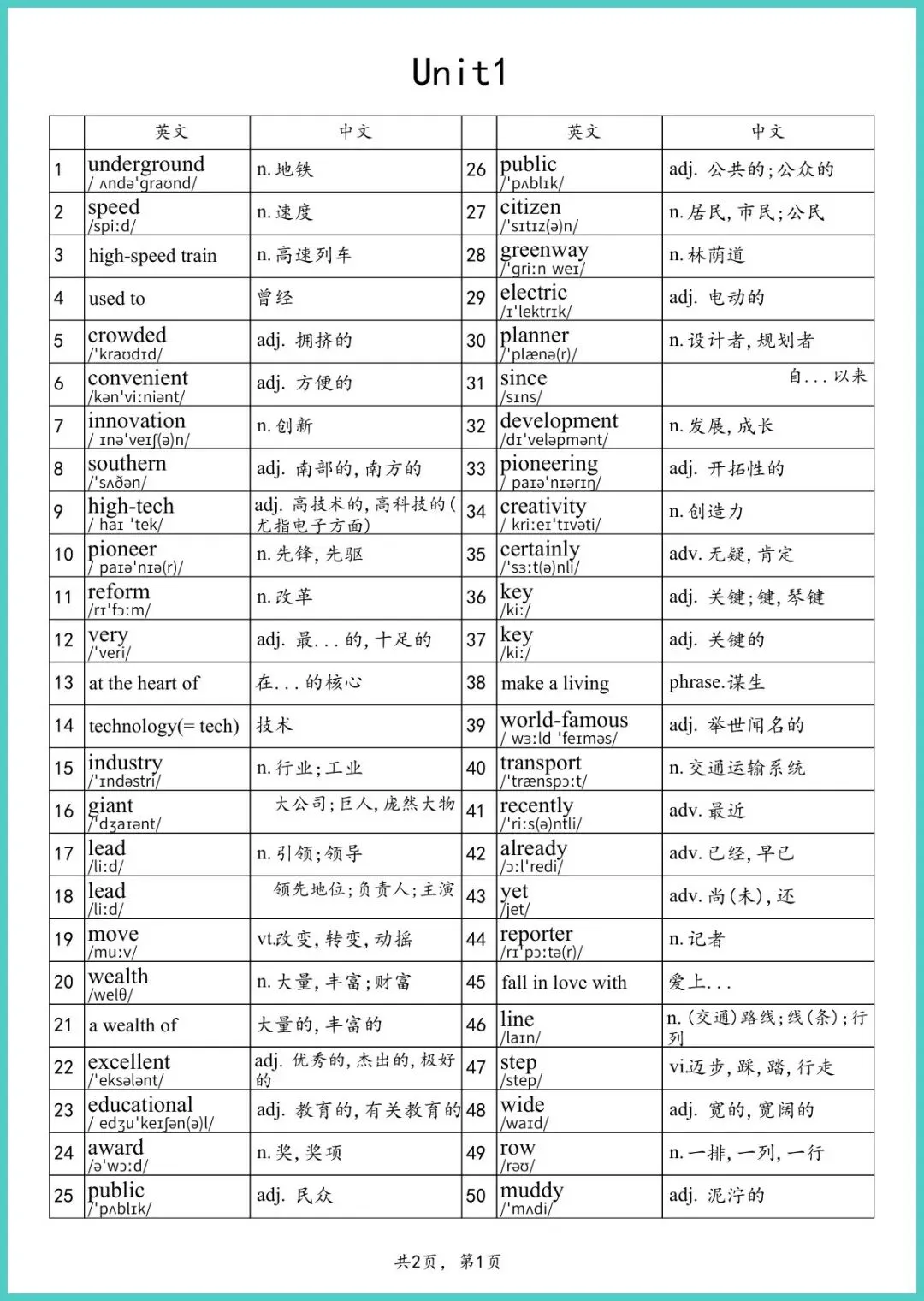 【免费下载】八年级(下)英语单词表_背诵版(译林版) | PDF完整高清可打印