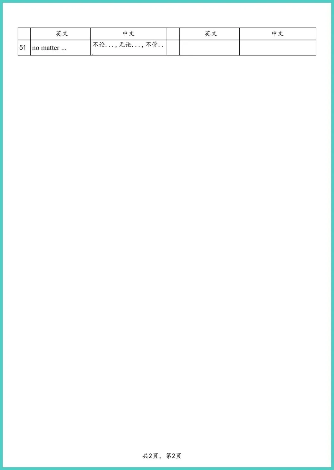 22年春译林版八年级下册英语单词表背诵版,共12页电子版,可打印可收藏!这份小册子把整本书的黑体星标短语一网打尽,左栏英文,右栏中文留白,方便默写自检;高频词加星、易混词附对比,孩子背得快、记得牢,每天10分钟,两周搞定单元词汇,阅读写作不再卡壳!需要的家长赶紧打印一份,让孩子随身背、睡前默,轻松锁住高分!
