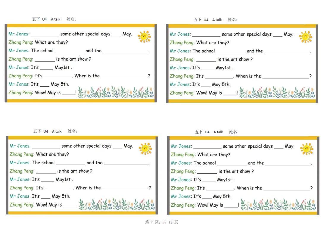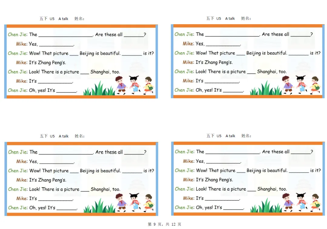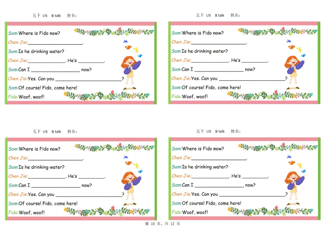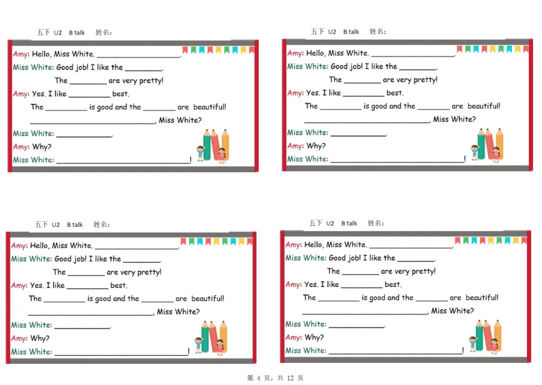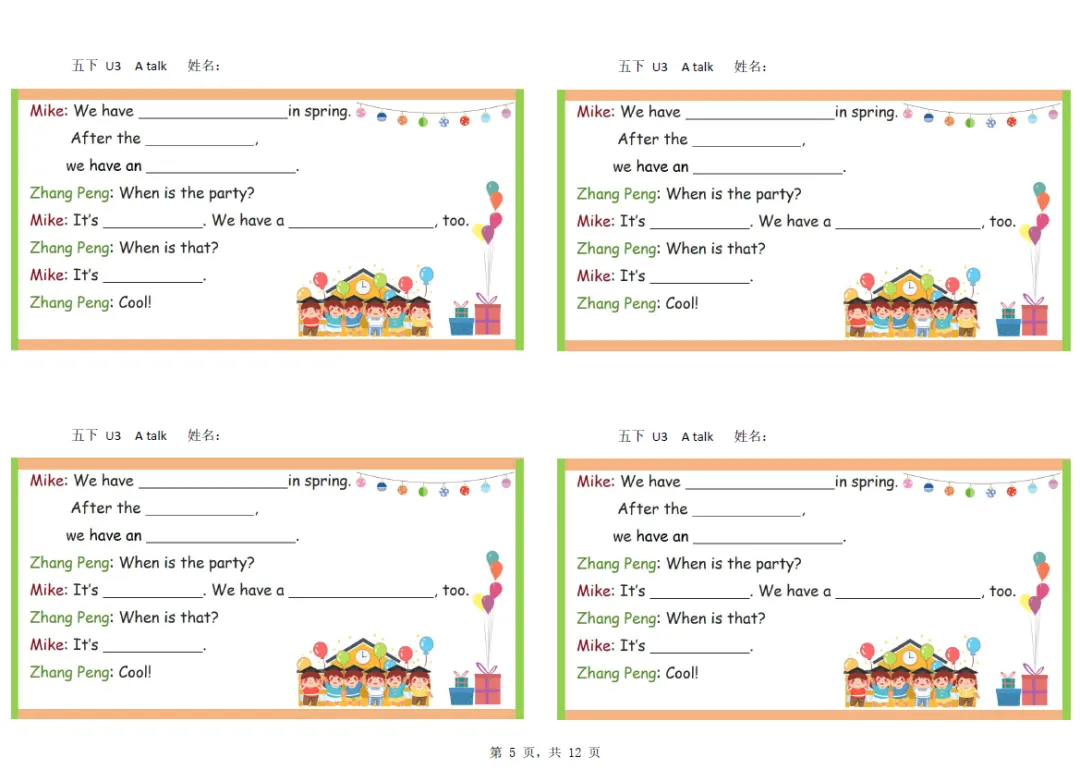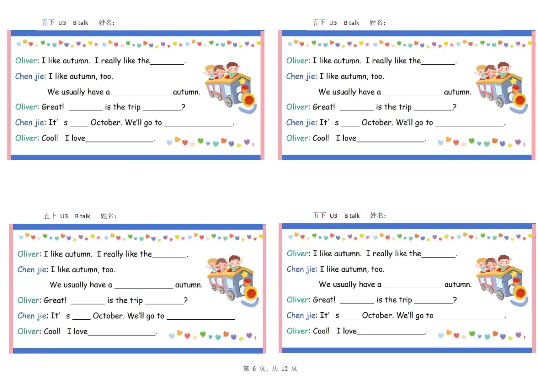 五年级下册英语彩色默写单,电子版可打印