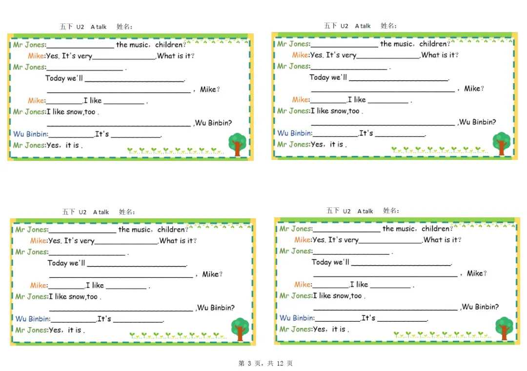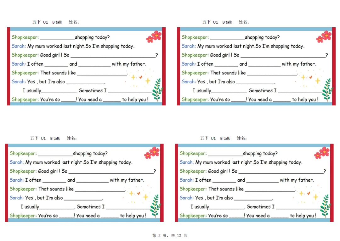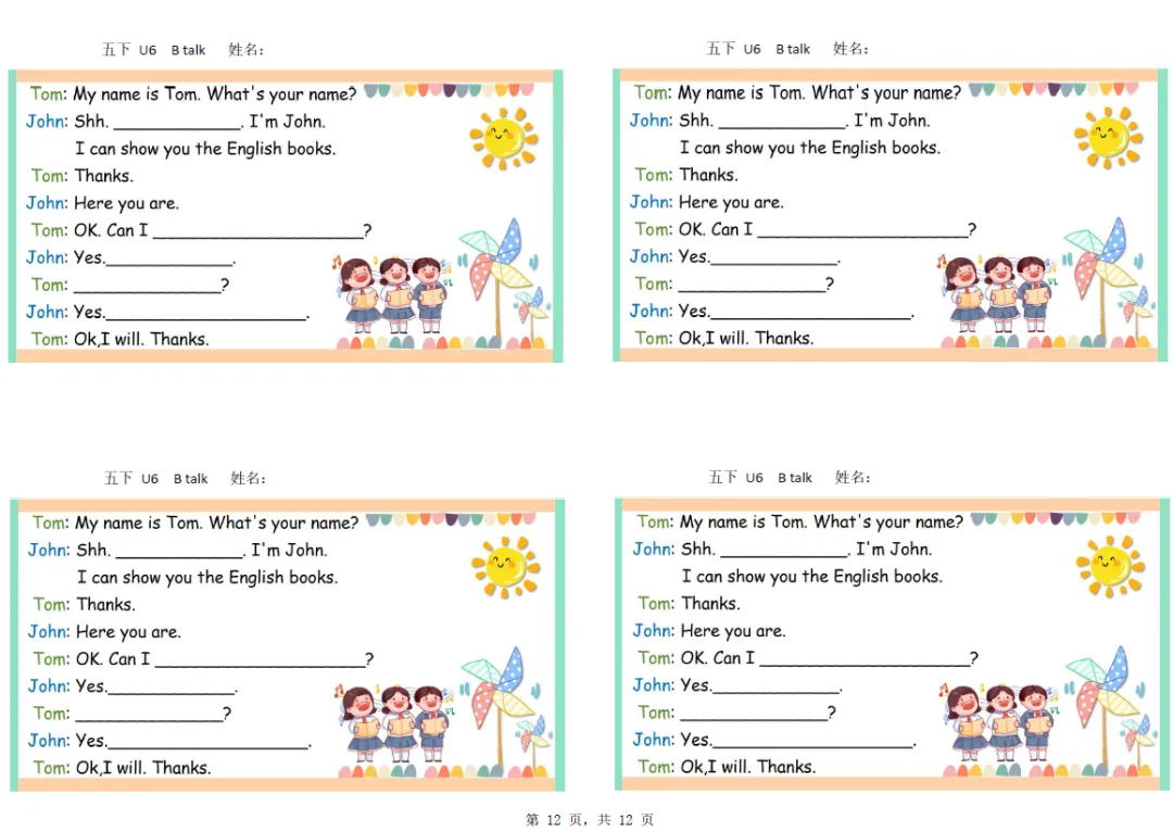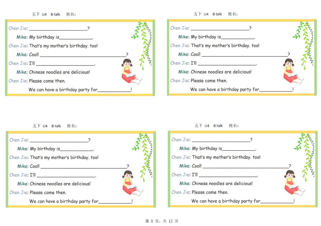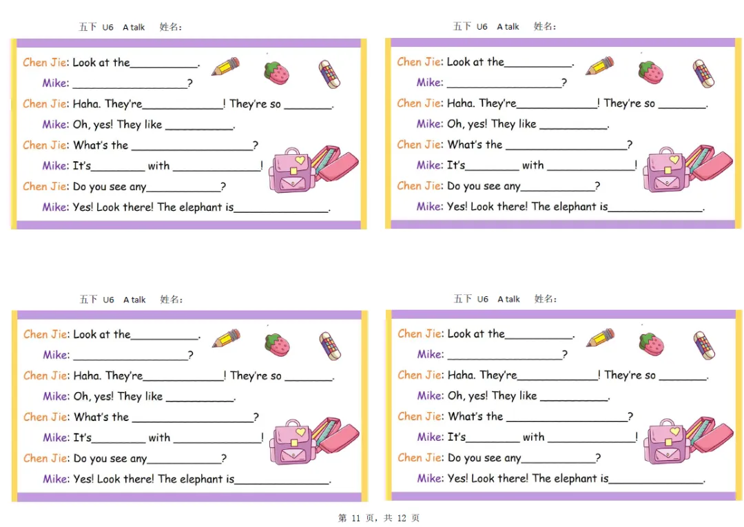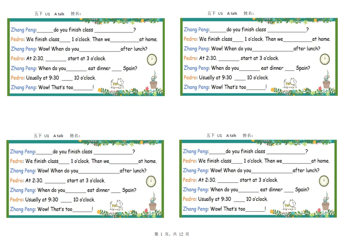 五年级下册英语彩色默写单,电子版可打印