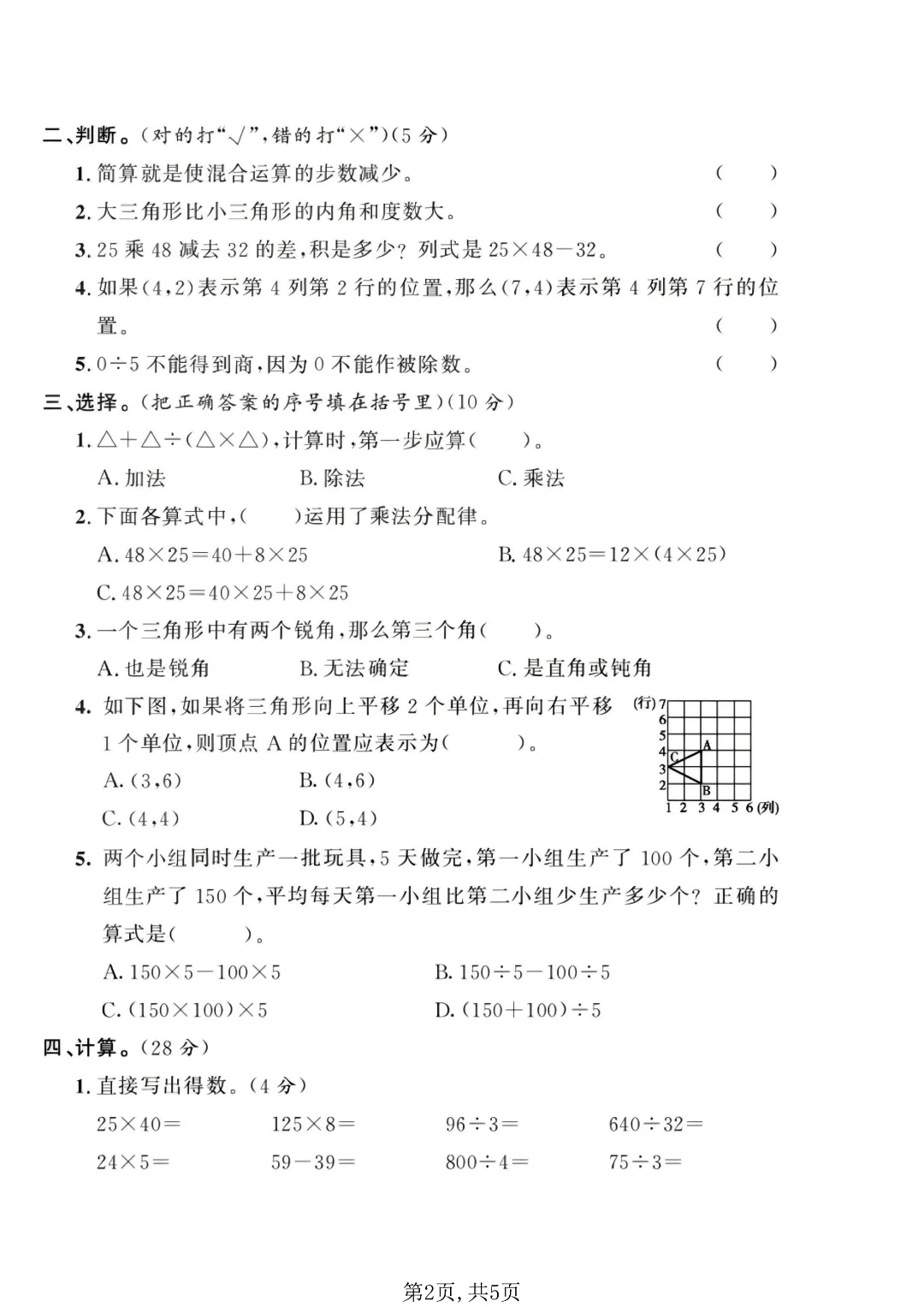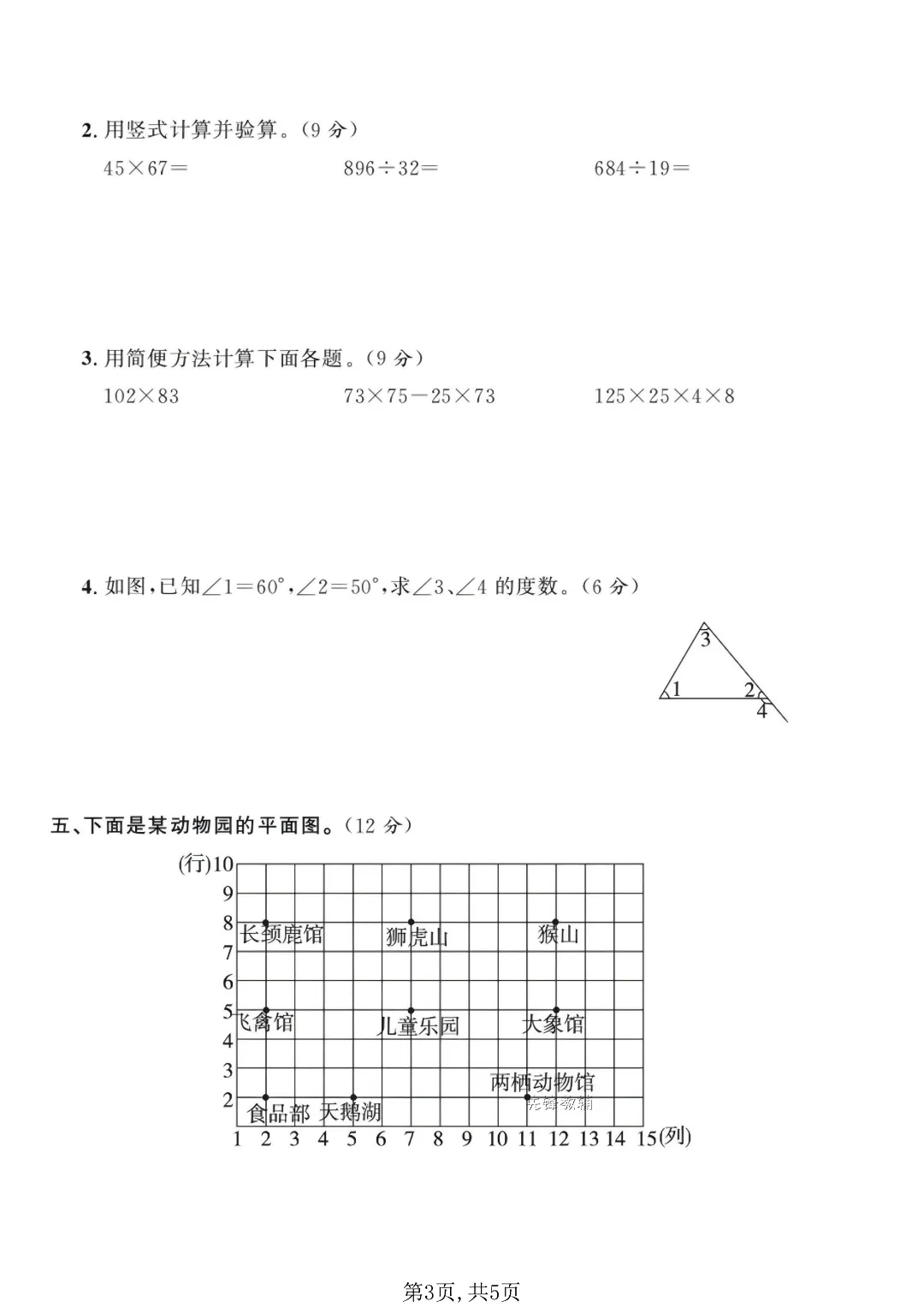 ✨今日给家长朋友们分享的是:2026年春新四年级下册西师版数学《期中模拟测试卷共3套》附答案解析 电子版可打印
