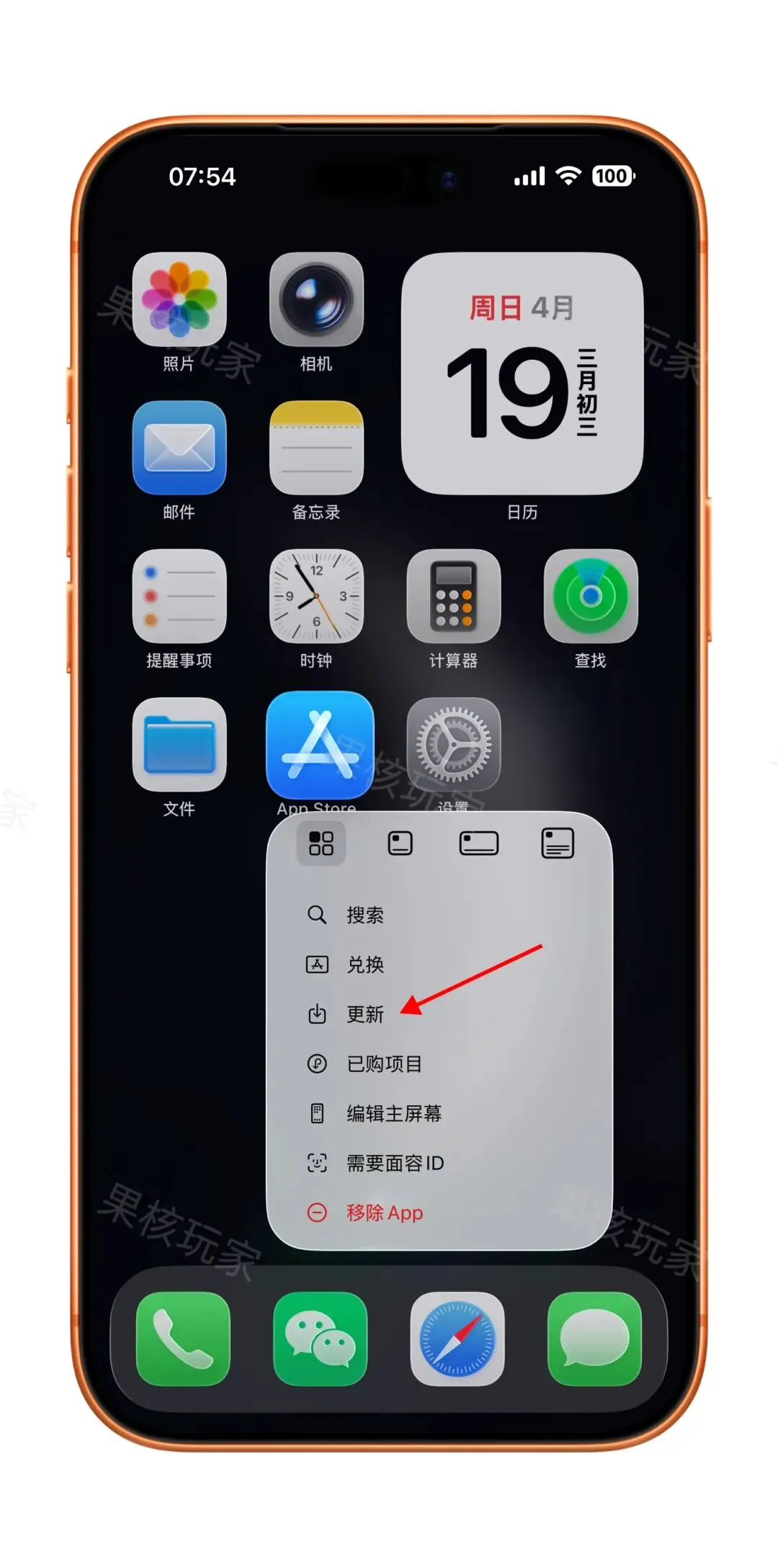 习惯手动更新 App 的话,还有个更快捷的方式:在主屏幕长按 App Store 图标,菜单里就能直接找到「更新」。