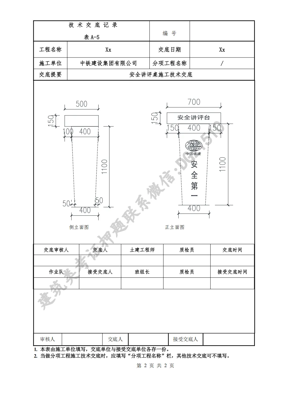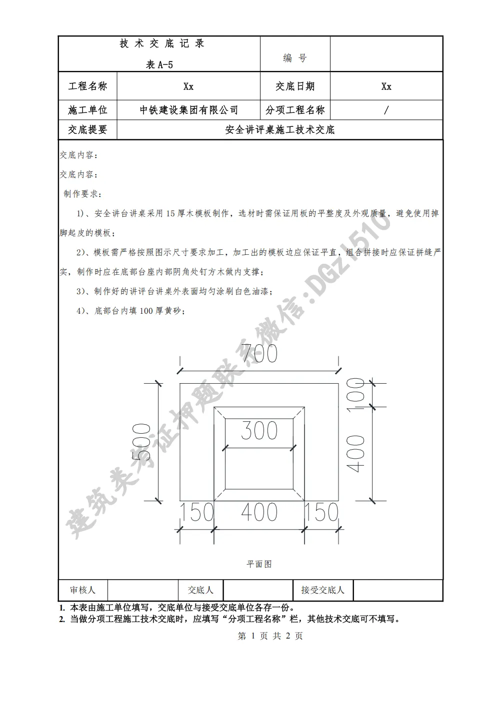 【工程资料】安全讲评桌施工技术交底 | 可编辑可下载