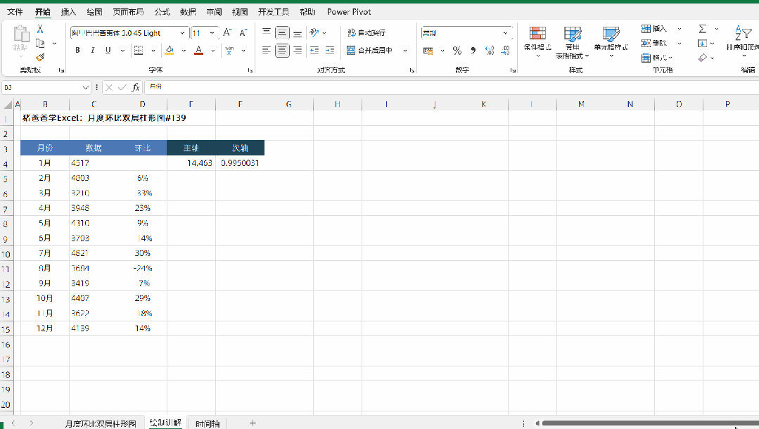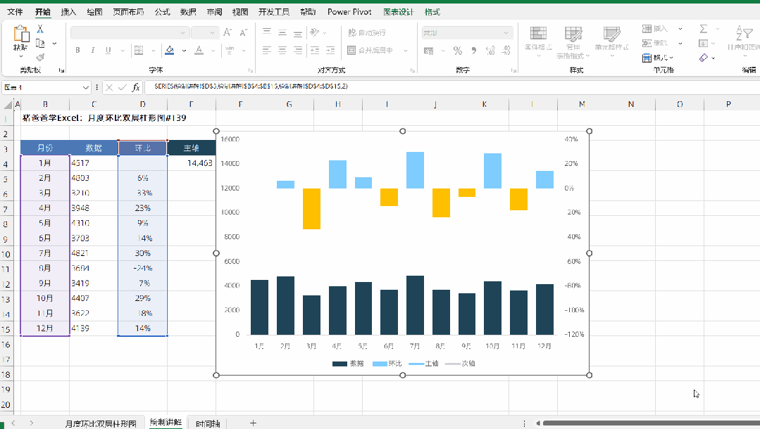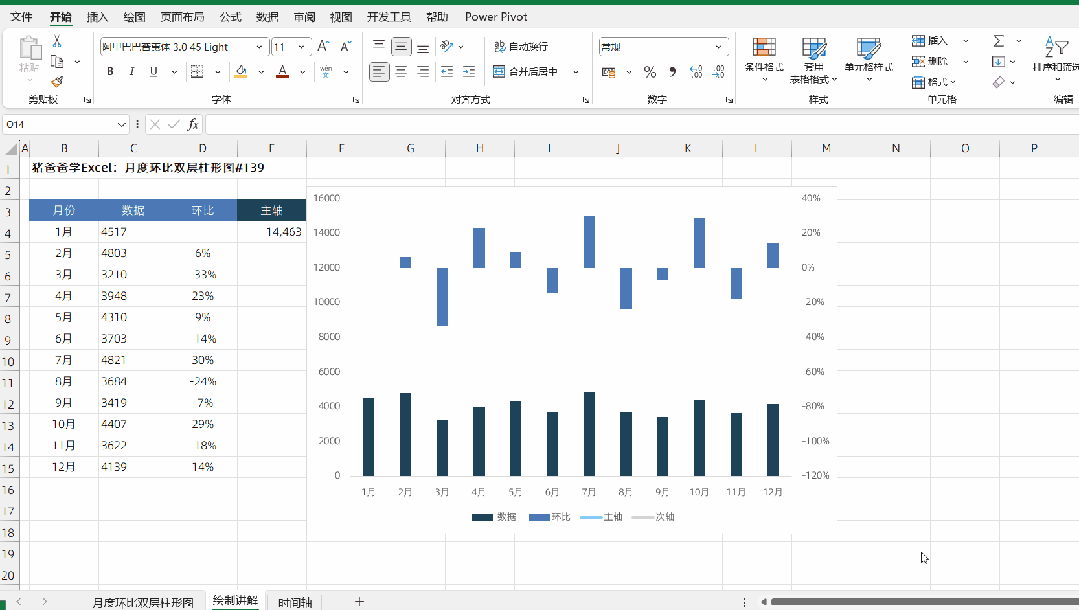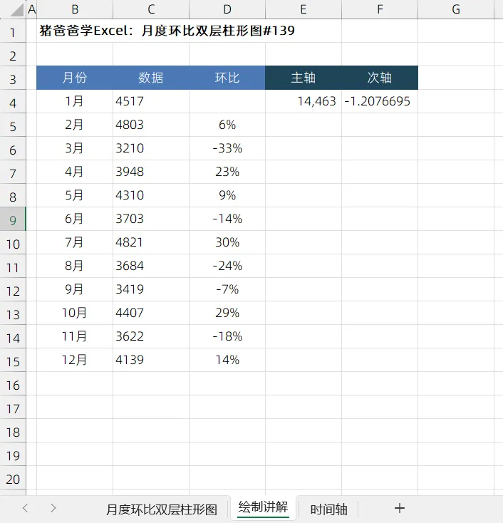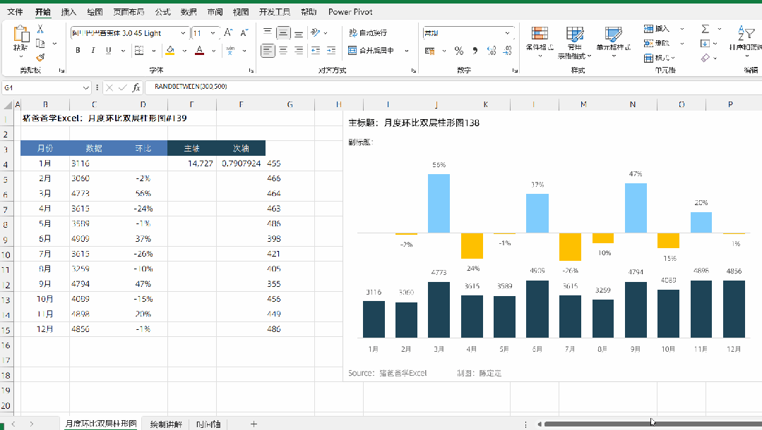 月度环比双层柱形图|猪爸爸学Excel图表
