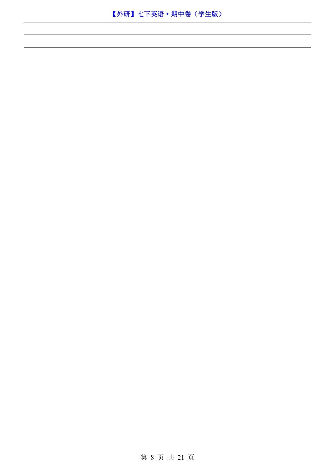 今天给大家分享的是:初一七年级下册英语外研版《期中考试测试卷2套含答案含答题卡》,完整电子版可打印