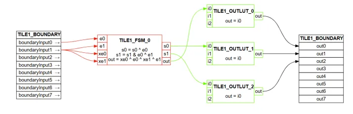 FSMOUT -> OUTLUT0 -> CLBOUT12 -> outputxbar -> gpio