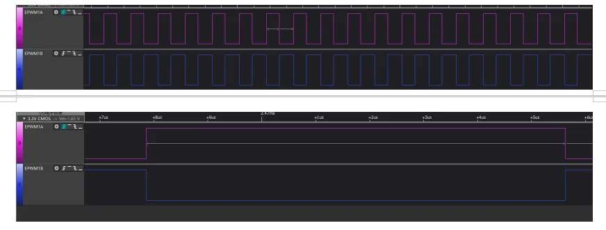 旨在确保有源高互补对 PWM 配置在任何情况下都始终以最小死区时间运行,不受生成 PWM 的模块如何配置的影响。该示例演示了如何配置 4 个独立的 PWM 模块,为 4 路 PWM 通道实现保护功能。其中,PWM 模块 1~4 的输出分别由 CLB 模块 1~4 进行控制。