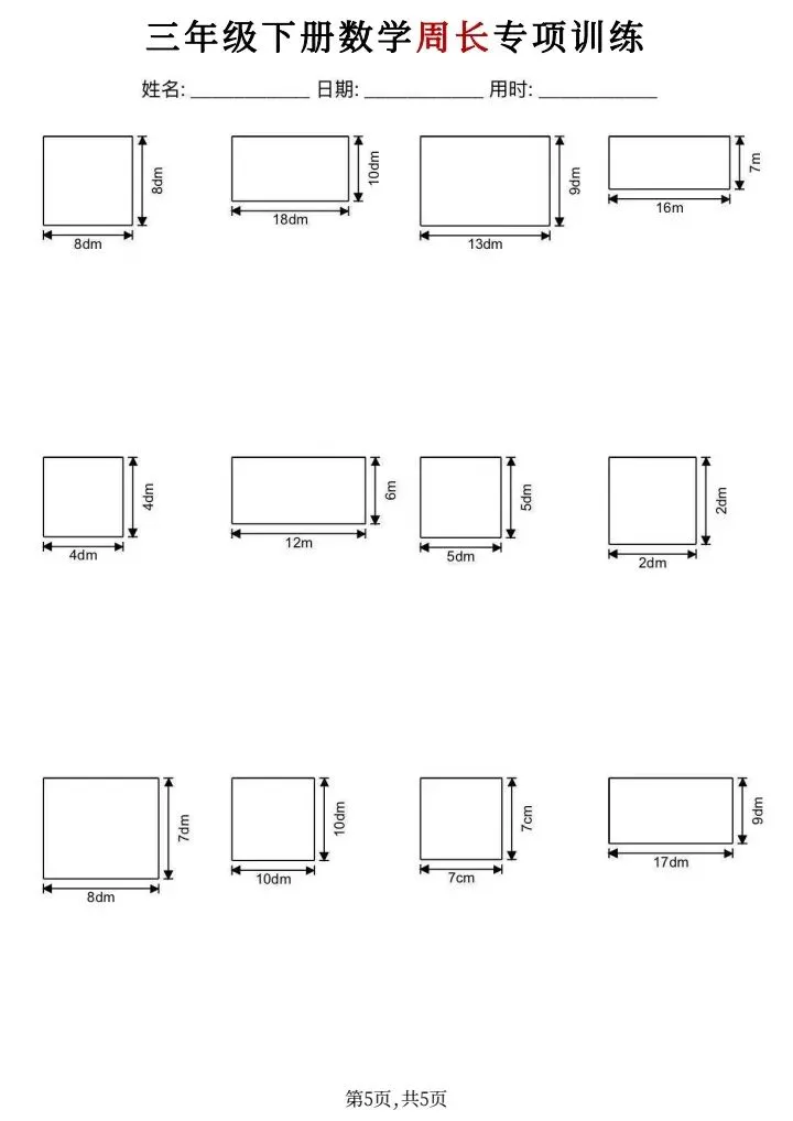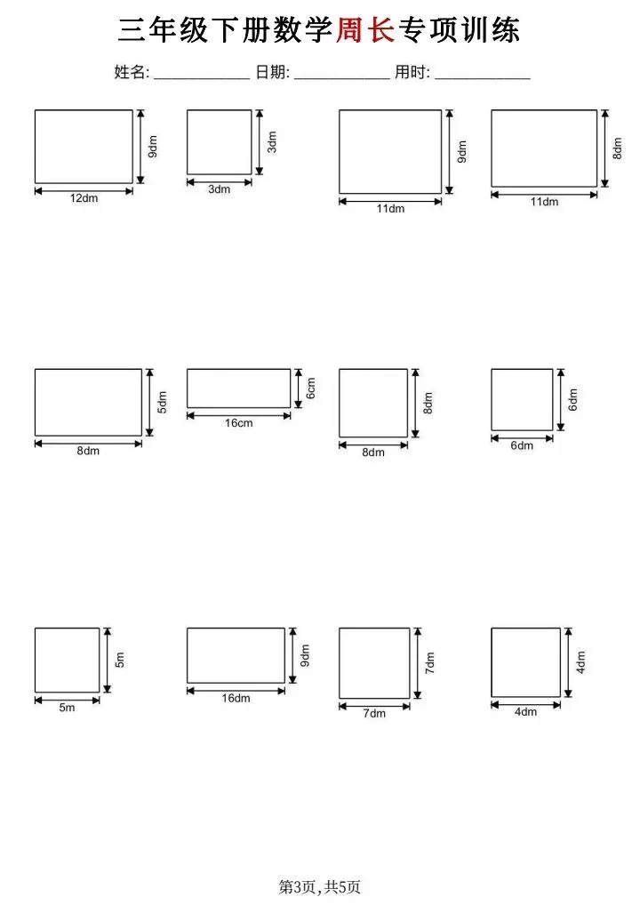 今日分享:三年级下册数学周长专项训练(完整电子版可打印)!文章配套电子版可直接打印,家长无需额外整理,根据孩子薄弱点灵活安排练习,循序渐进、扎实提分✨