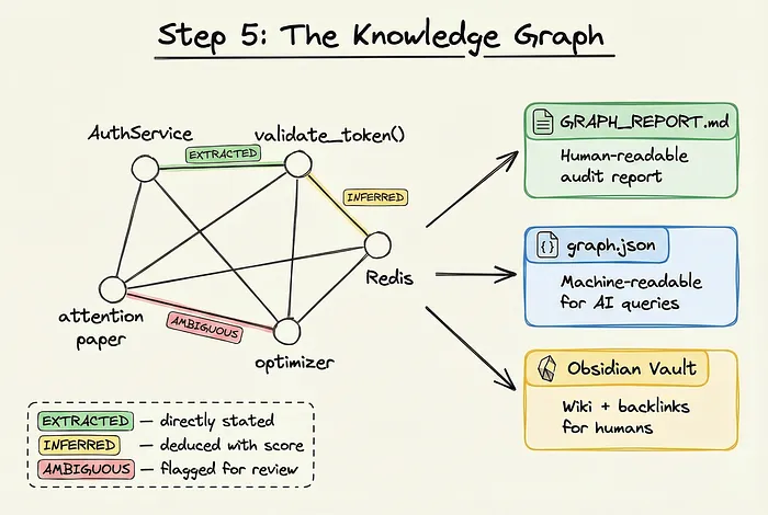 三轮处理完成后,Graphify 输出一个结构化的、持久化的知识图谱。