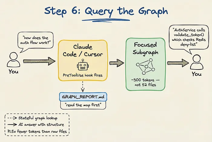 不是把 52 个文件丢进上下文窗口,而是拿到一个大概 300 tokens 的高度相关子图。