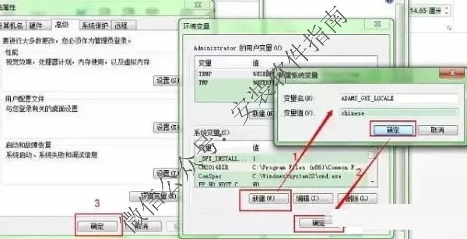 34.在系统变量中新建变量名ADAMS_GUI_LOCALE变量值Chinese然后点确定。