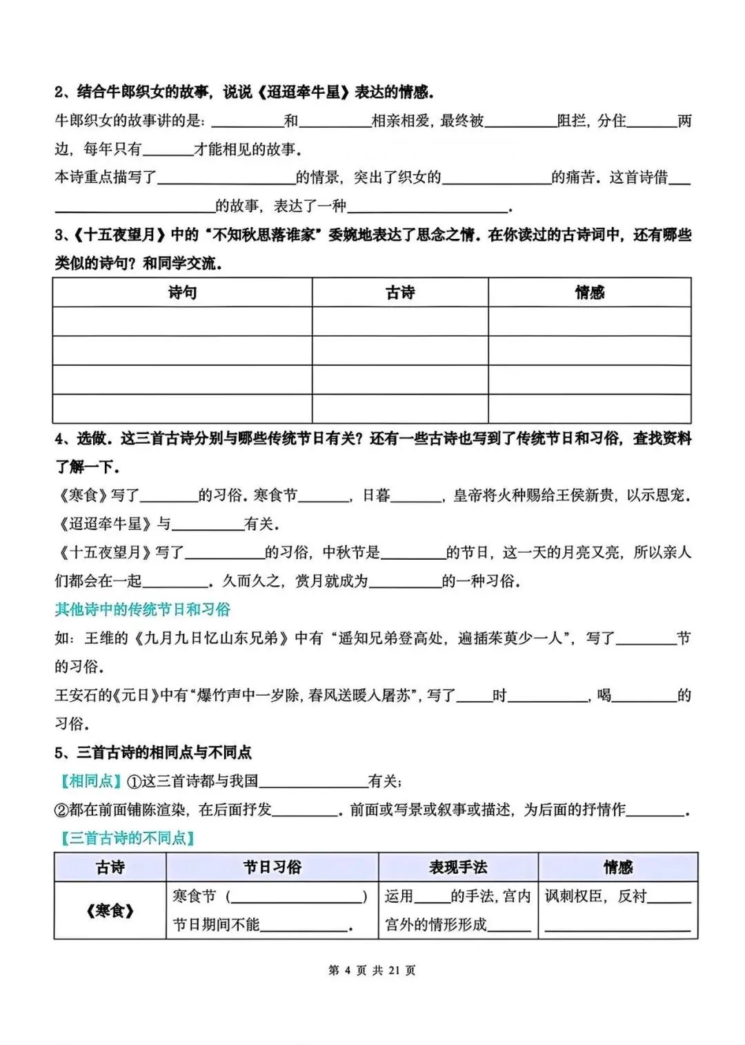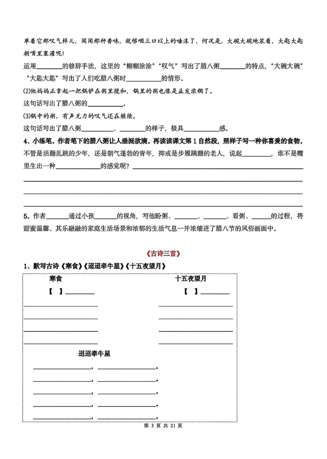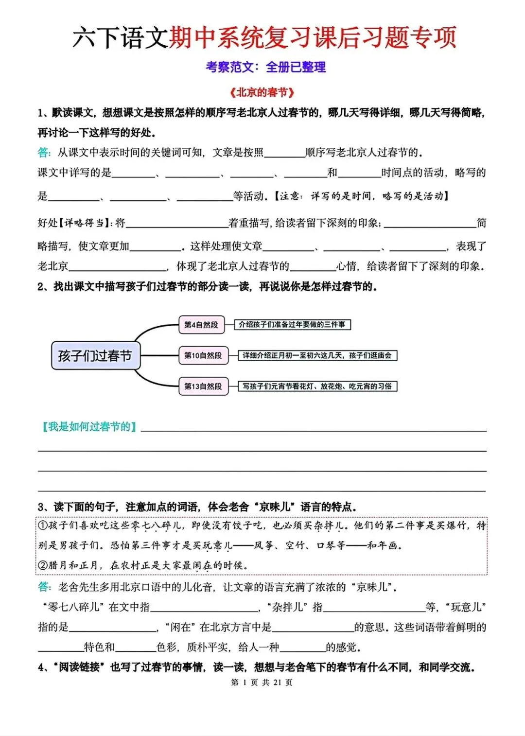 2026春人教统编版六年级下册语文期中1-4单元系统复习《课后习题专项练习》,完整可打印