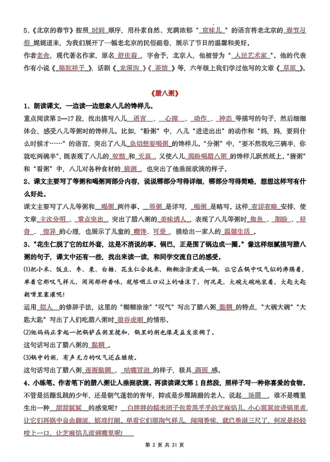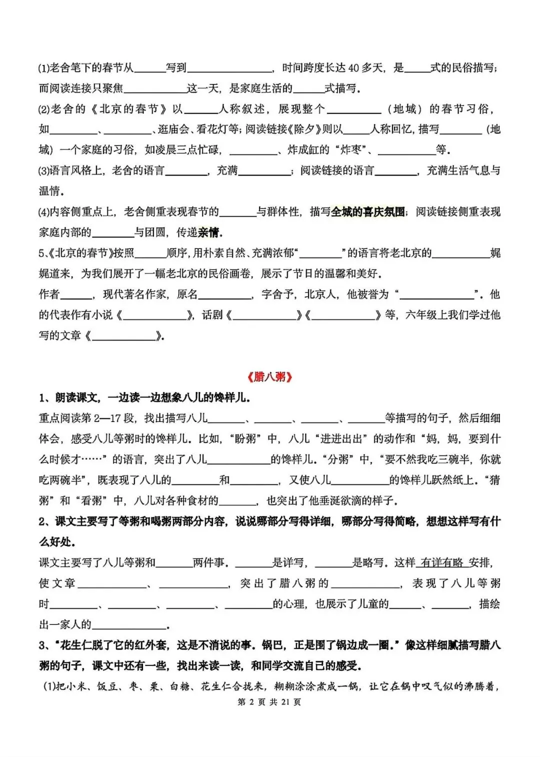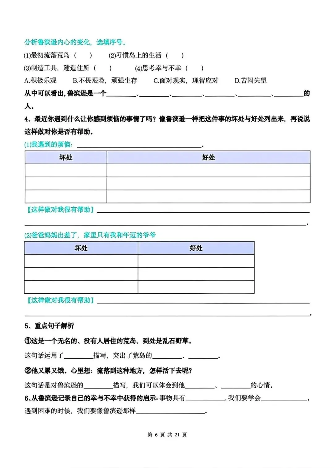 2026春人教统编版六年级下册语文期中1-4单元系统复习《课后习题专项练习》,完整可打印