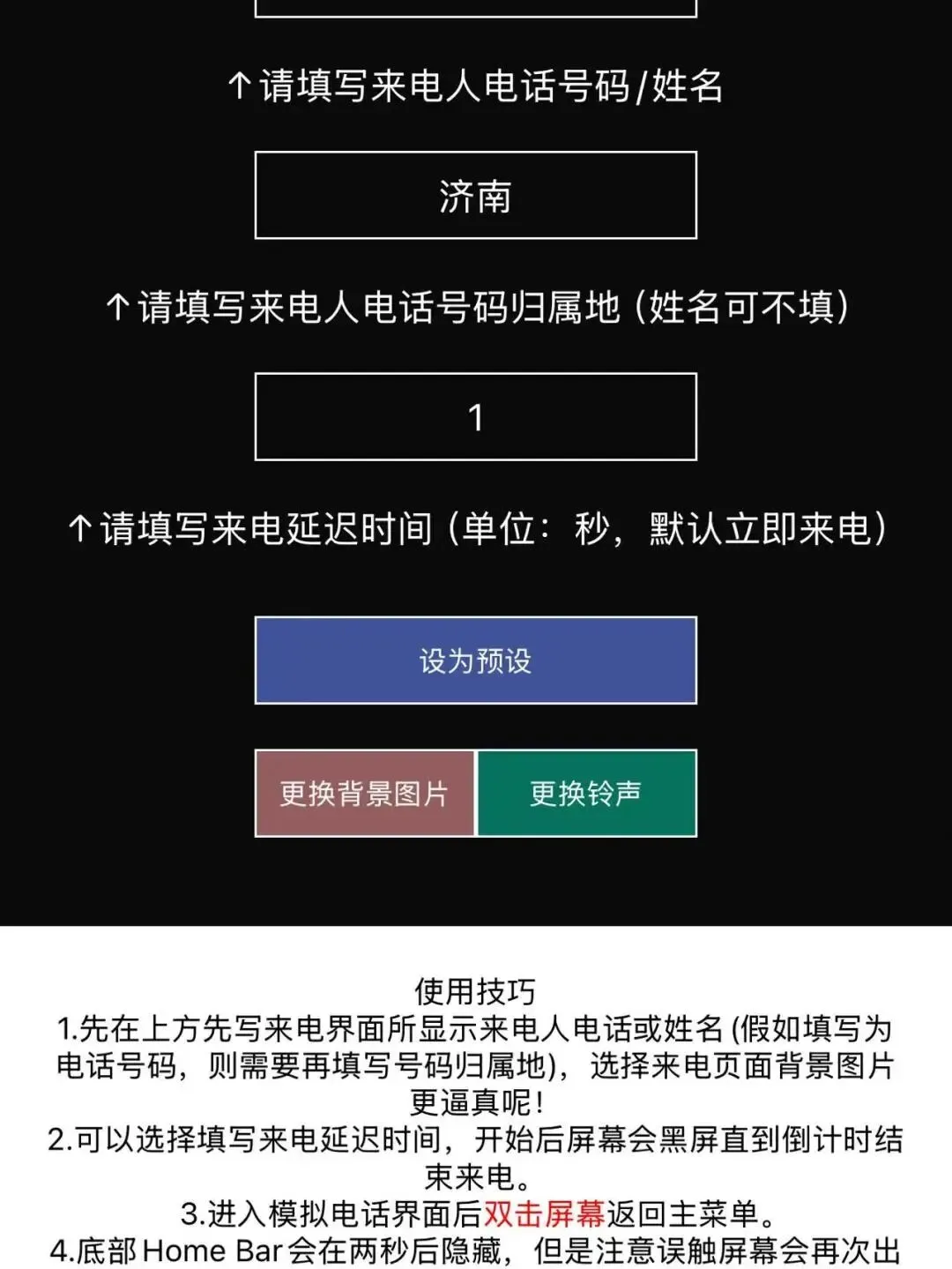 Esc的模拟来电,完美还原真实通话界面,可以提前自定义联系人姓名、号码、铃声、壁纸,还能预设延迟启动。