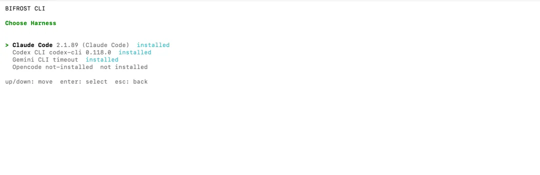 我不需要再学第三套设置,也不用管理一套单独的配置路径。我仍然使用同一个 Bifrost 界面、同一个启动流程、同一个模型选择工作流。唯一变化的是 harness。