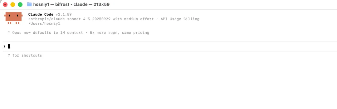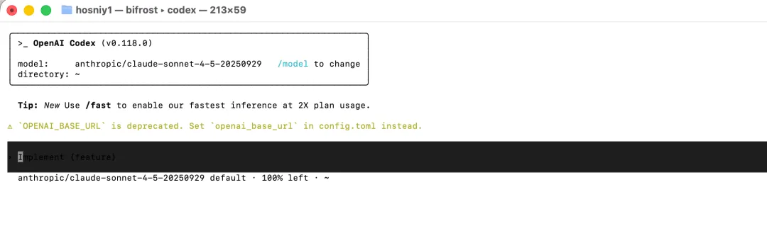 按下回车启动后,Claude Code 会通过 Bifrost 启动(如上图所示),你就可以照常使用它了。接下来看看如何用 Codex 做同样的事。