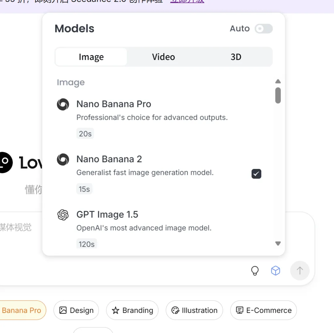 Lovart 集成了超过20个顶级模型,这一点是它真正的壁垒。